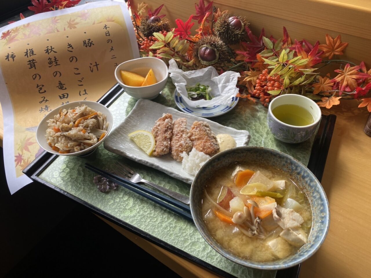 豚汁は、さつまいもやきのこなど旬の食材を取り入れて具沢山??