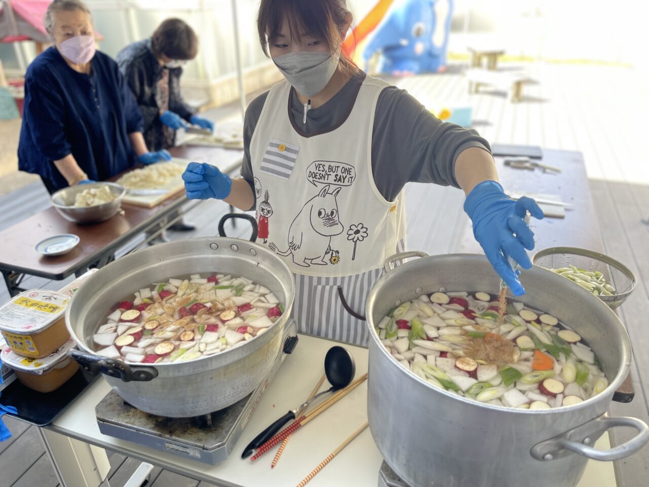 自分たちでは大鍋で作ることがないため、時間に間に合うかなとドキドキしながら仕込みや味付けにも集中します。(笑)
