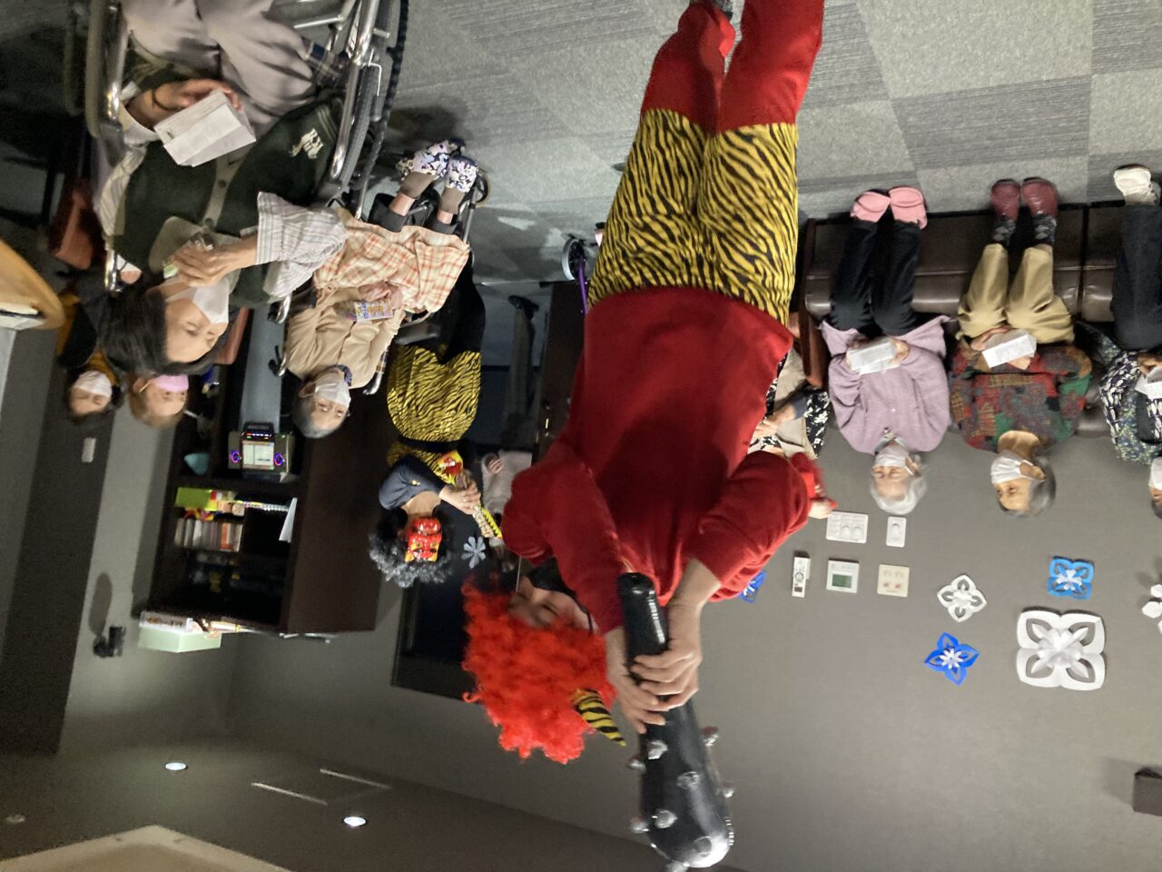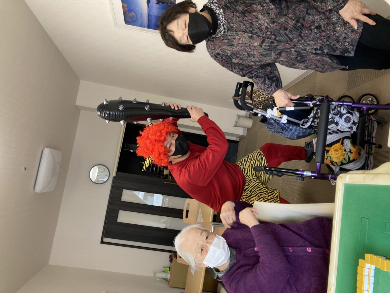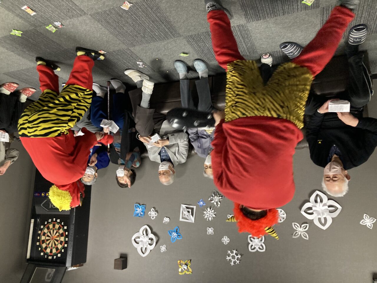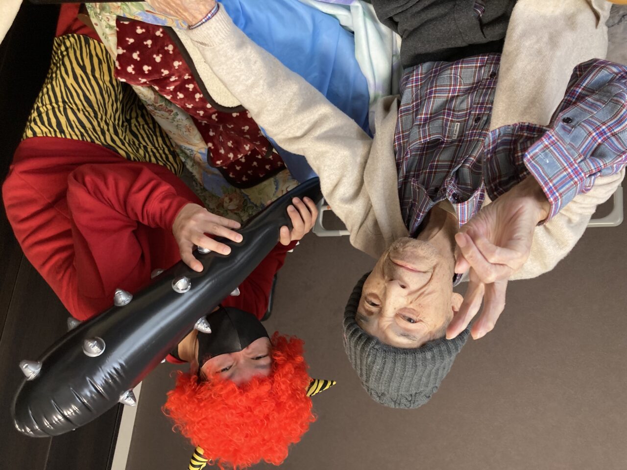 ご利用者も必死に豆を巻いている姿が分かります!皆さんで鬼3人組を退治できて