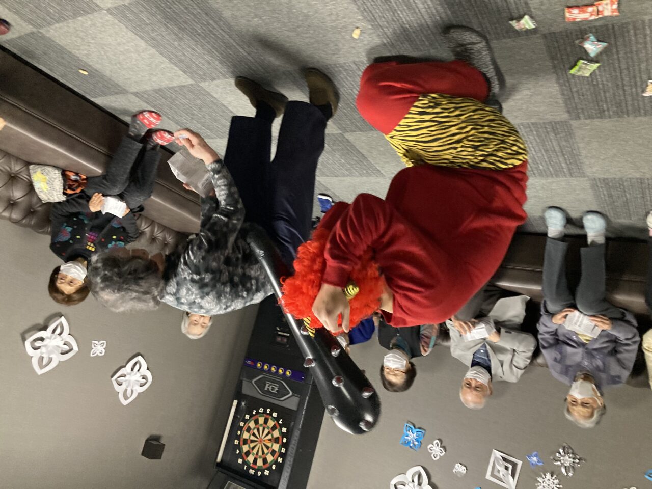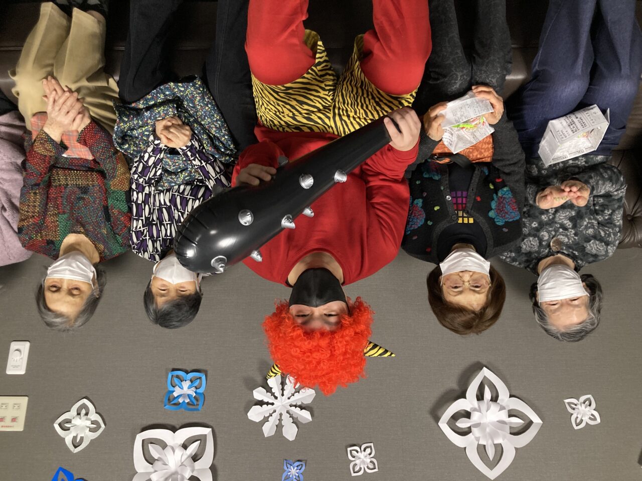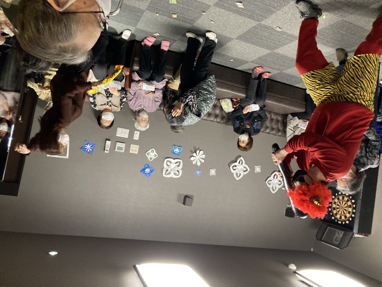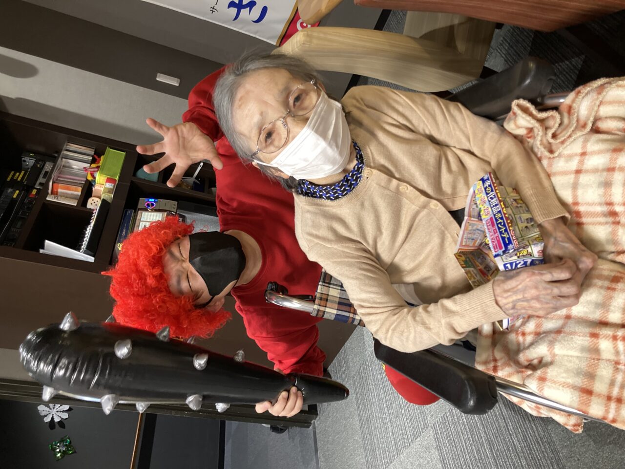 ご利用者も必死に豆を巻いている姿が分かります!皆さんで鬼3人組を退治できて