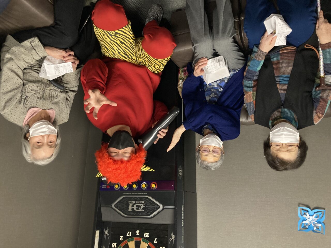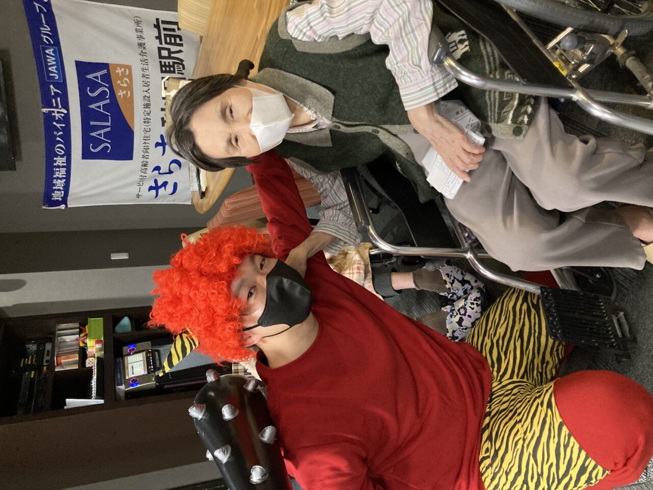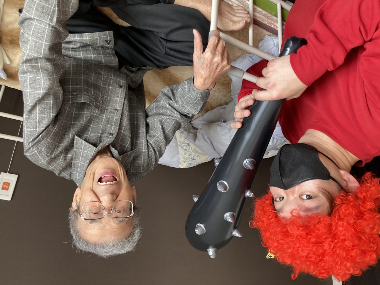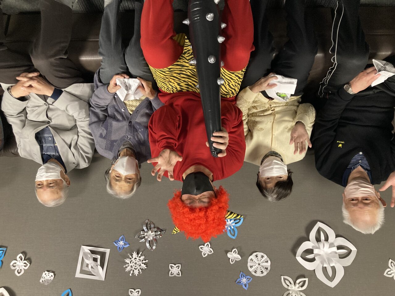 ご利用者も必死に豆を巻いている姿が分かります!皆さんで鬼3人組を退治できて
