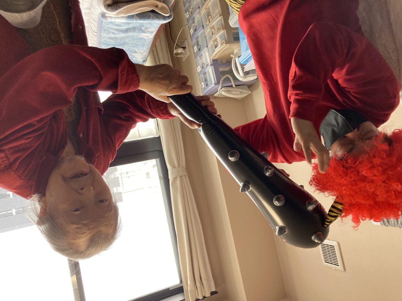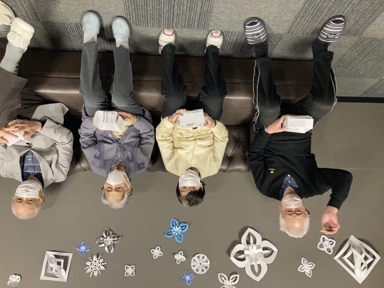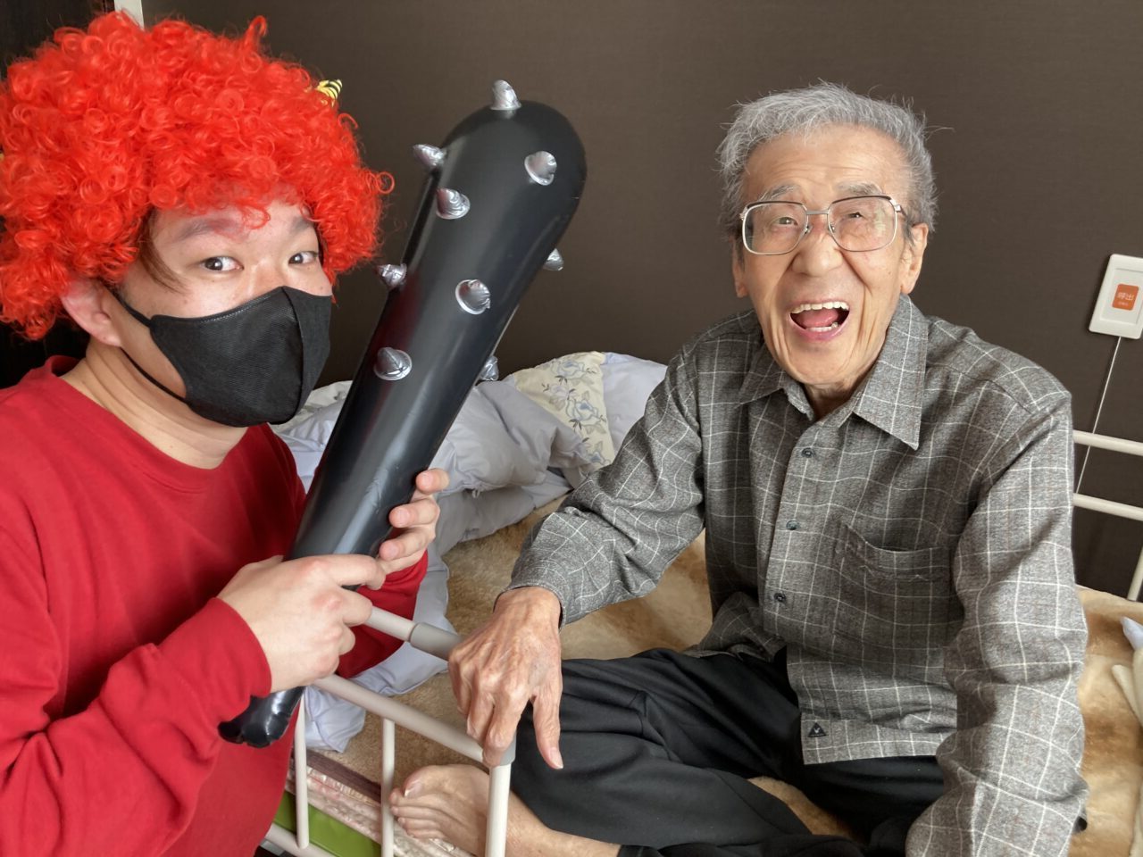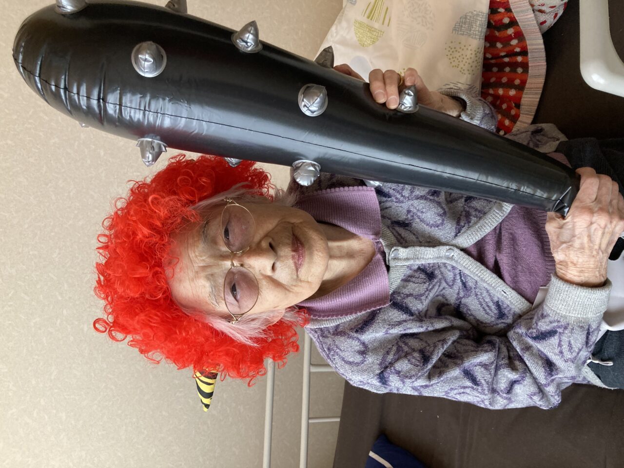 ご利用者も必死に豆を巻いている姿が分かります!皆さんで鬼3人組を退治できて