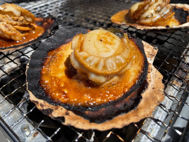 暑い中炭火で焼いたホタテたち…たまりませんね🌟