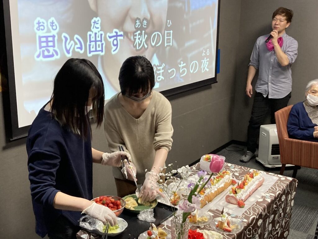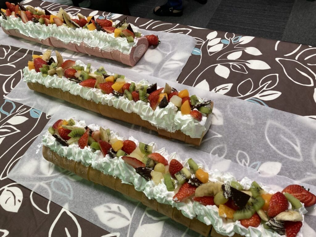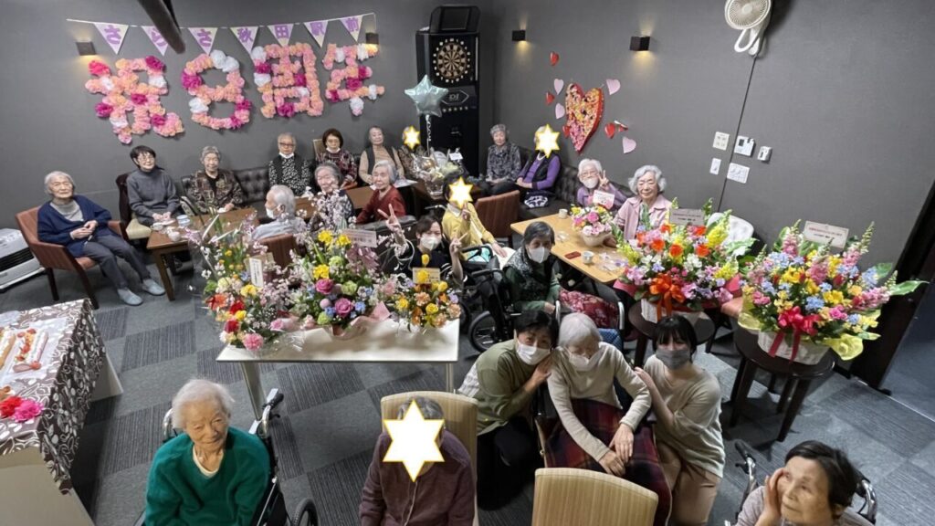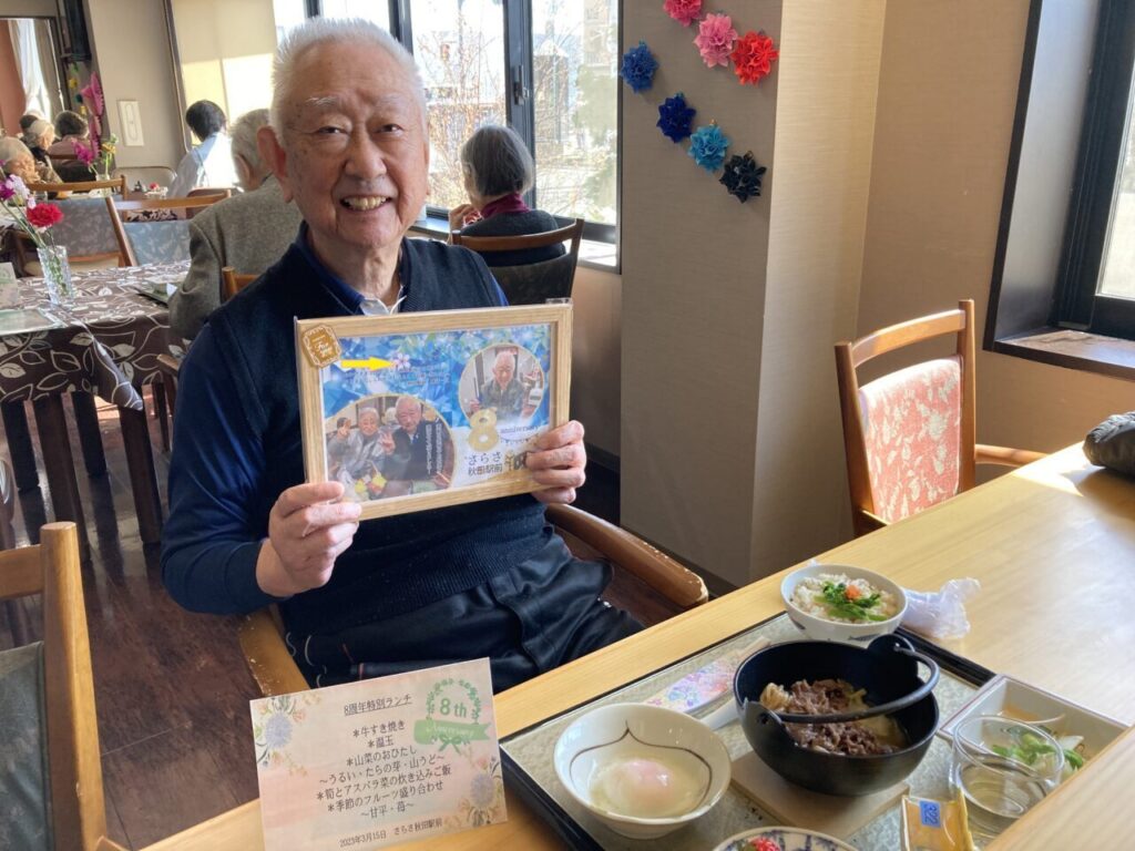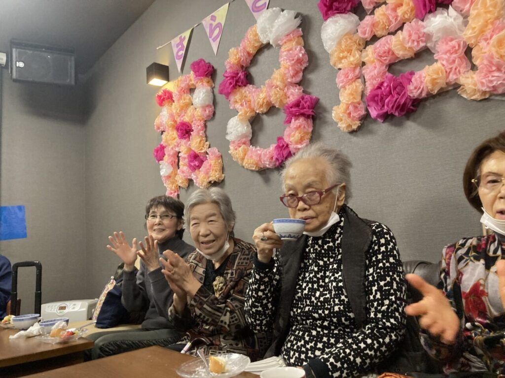 「私も8周年!」と開設当時からいらっしゃるKさん。「8年もよく頑張ったね。」と労ってくださるSさん。ご利用者の皆さんあってこその私達です!感謝の気持ちを込めて、みんなでお祝いを??