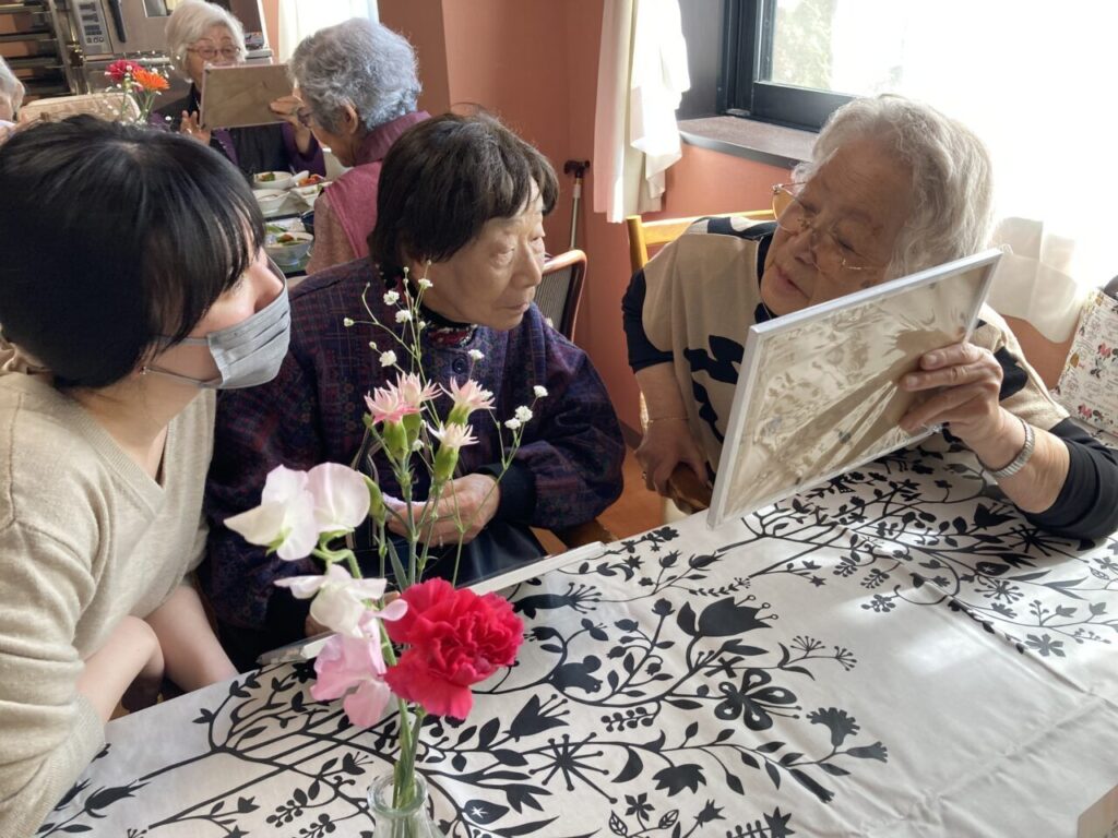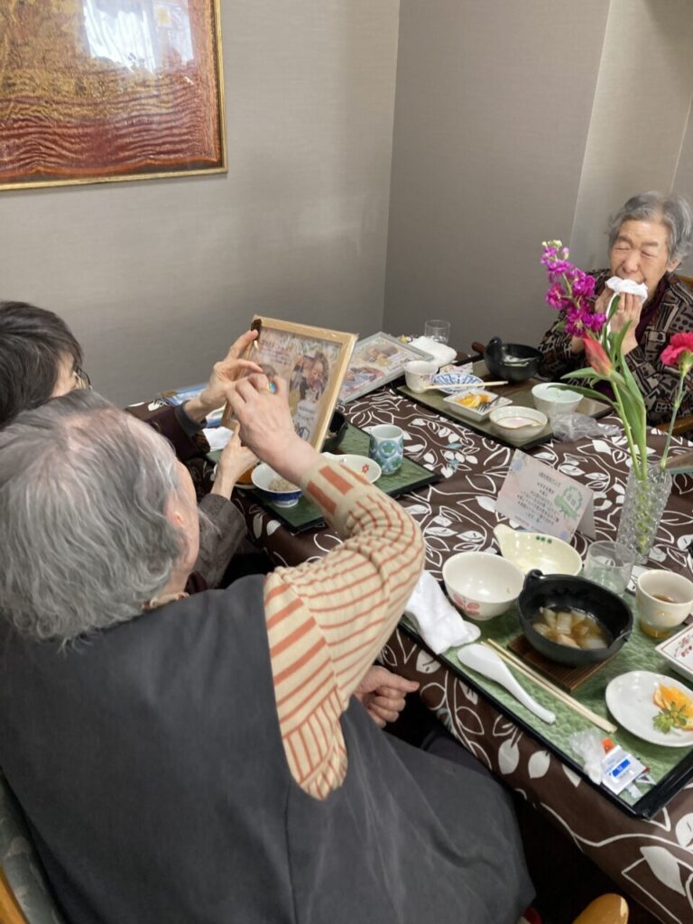 写真をお互いに見せ合って、あーでもないこーでもないと盛り上がります?♡しげしげと眺め、「写真なんて何年ぶりだろう。」とうっすら優しい笑みを浮かべるSさん。みなさんぜひお部屋に飾ってくださいね。