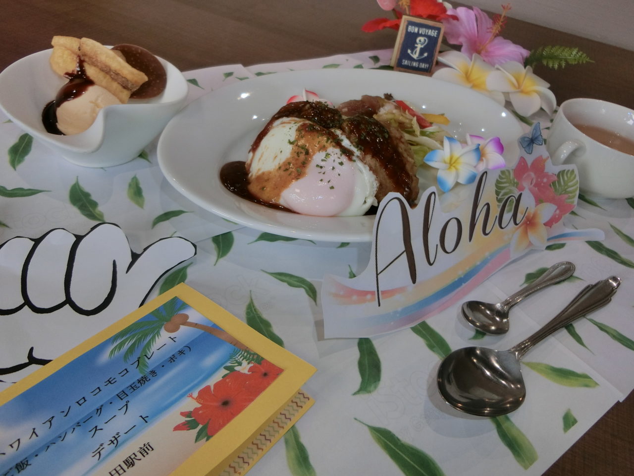 ・ロコモコプレート・ポキ風サラダ・スープ・デザート です?