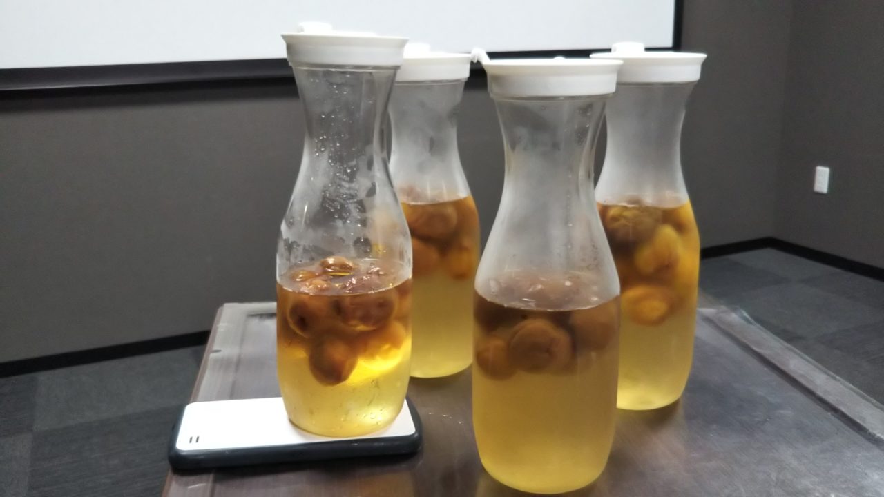 最初に来た方と後半に来た方とで、飲み比べされている方もおり、慣れてきた頃の後半の梅ジュースが美味しかったとの事です(;´∀`)