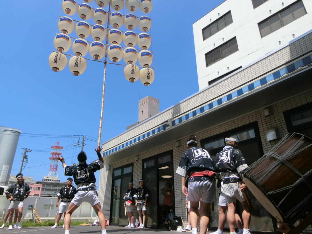 さらさ秋田駅前の手塚パートナーも竿燈会の方と一緒にお囃子をご披露?