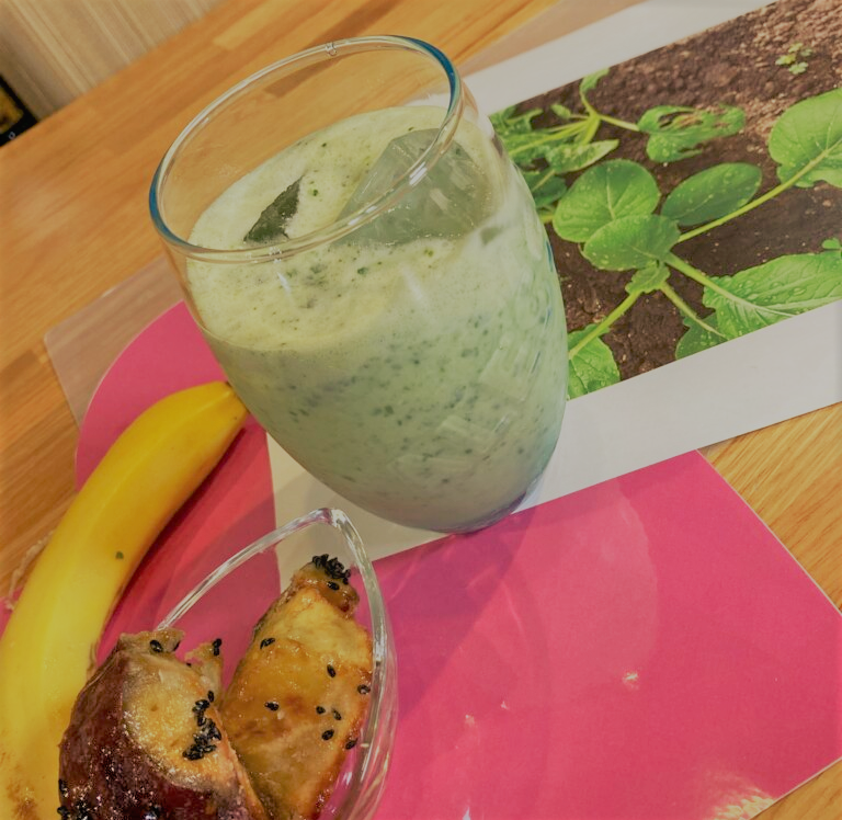 小松菜にバナナと牛乳、リンゴジュースにバニラアイスを入れて・・・