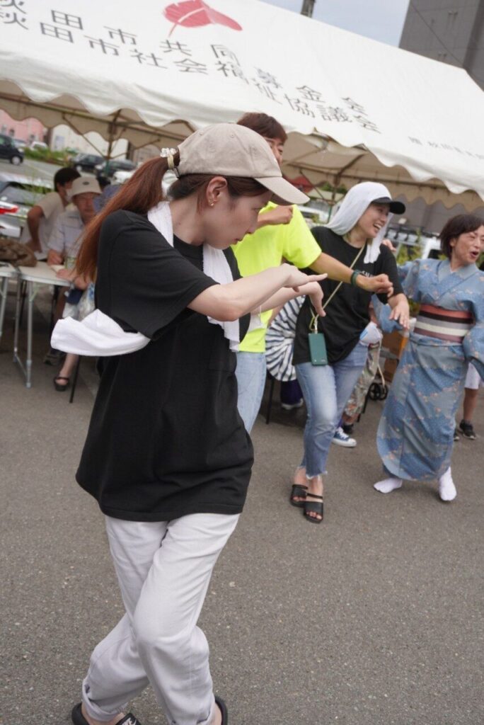 みんなが盆踊りをする中一人だけフリースタイルな安衣パートナー?