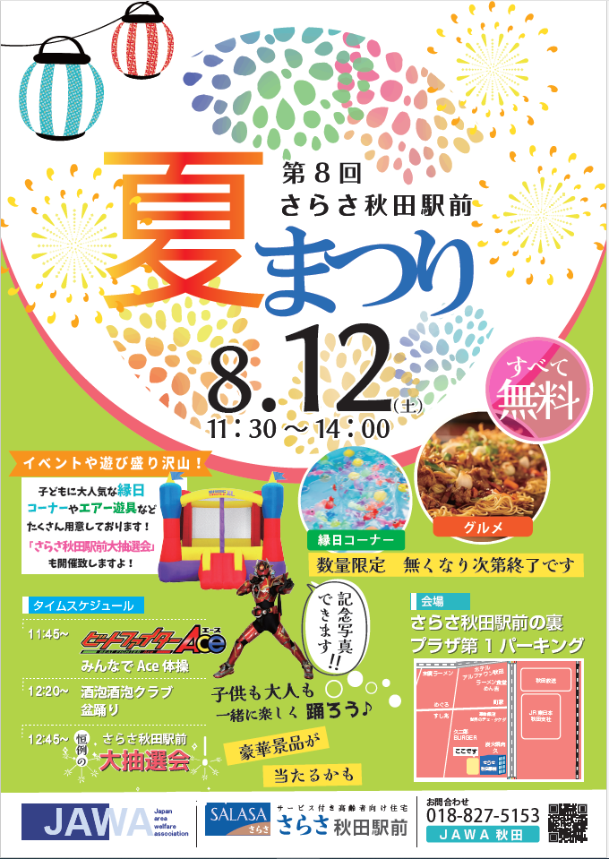 秋田駅前では一般のお客様を招いての夏祭りはオープン以来でもあり、