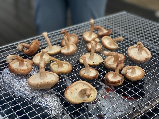 バーベキューコンロで焼き椎茸と焼き芋を??