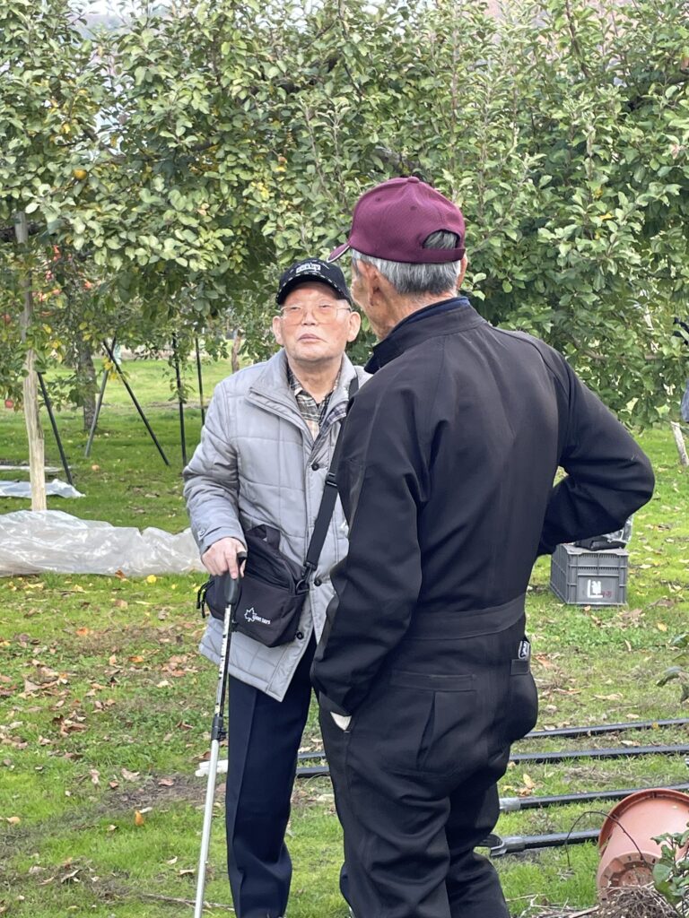 何十年振りかで、果樹園のご主人と対面したIさん…