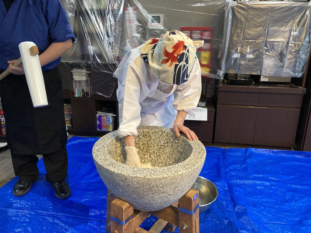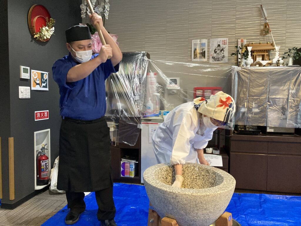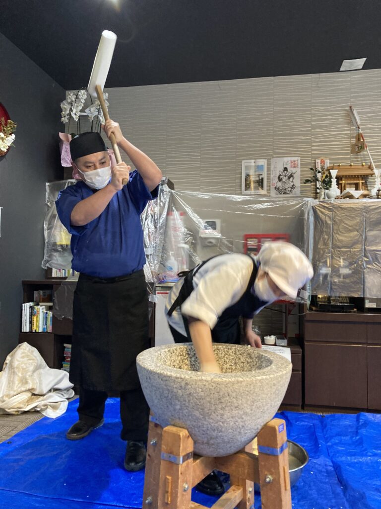 クリスマスの盛り上がりも冷めやらぬ秋田駅前の面々ですが、今日の午前中に餅つき会をおこないました(*^-^*)