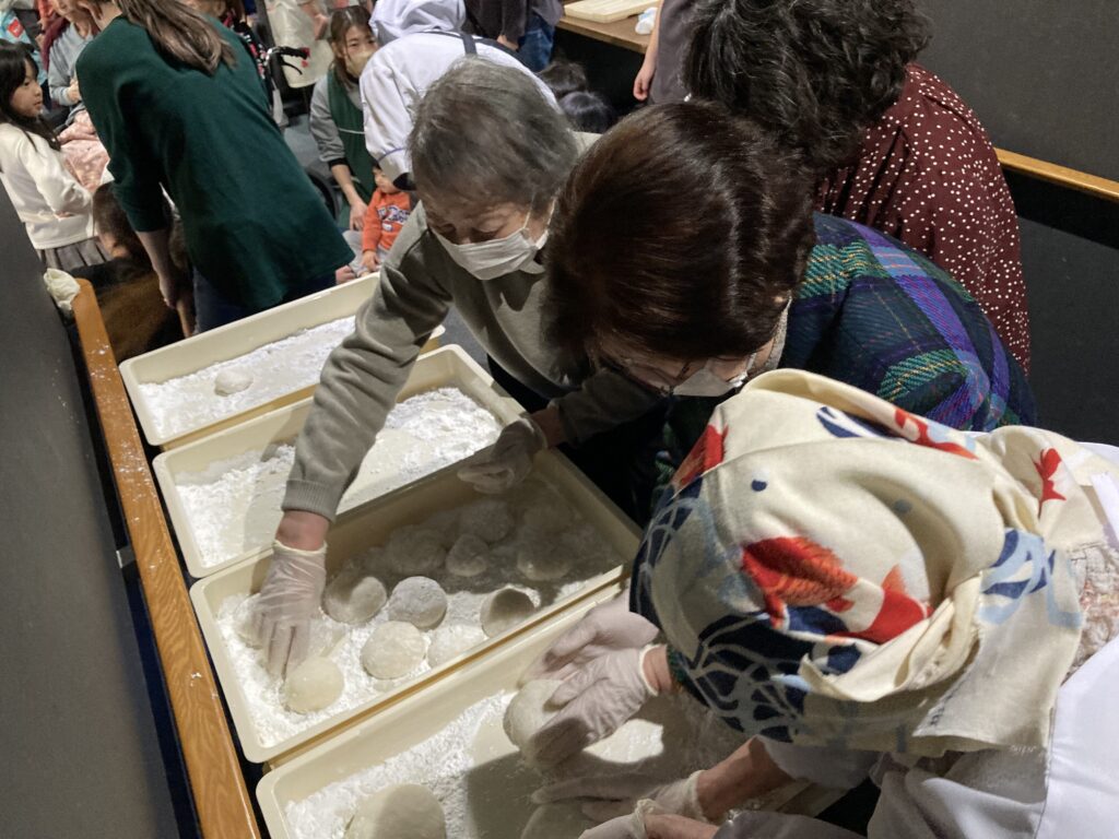 無事つき上がったお餅を今度はお供えにします。女性達の出番です?