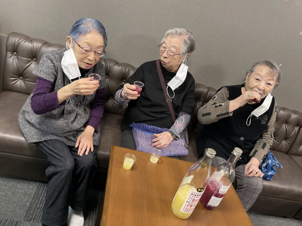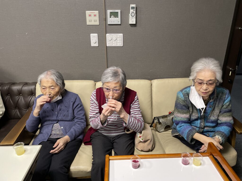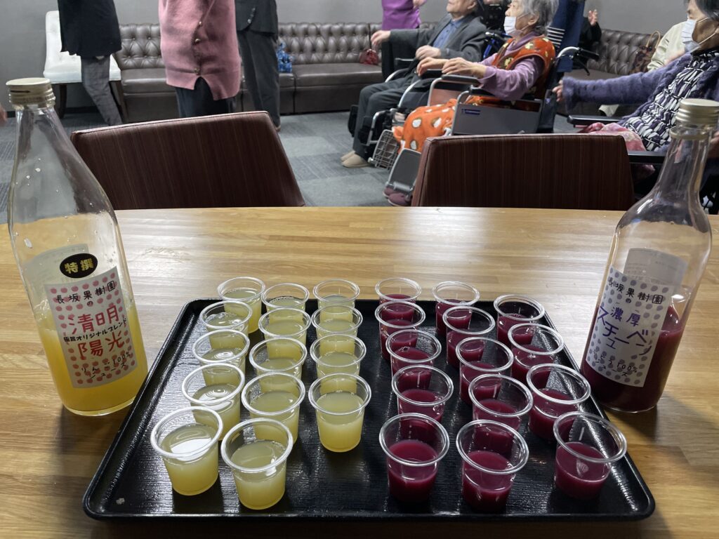 本日は、珍しいジュース(りんご?・ぶどう?)二種類の試飲会をしましたので、その様子をお伝えしますね?