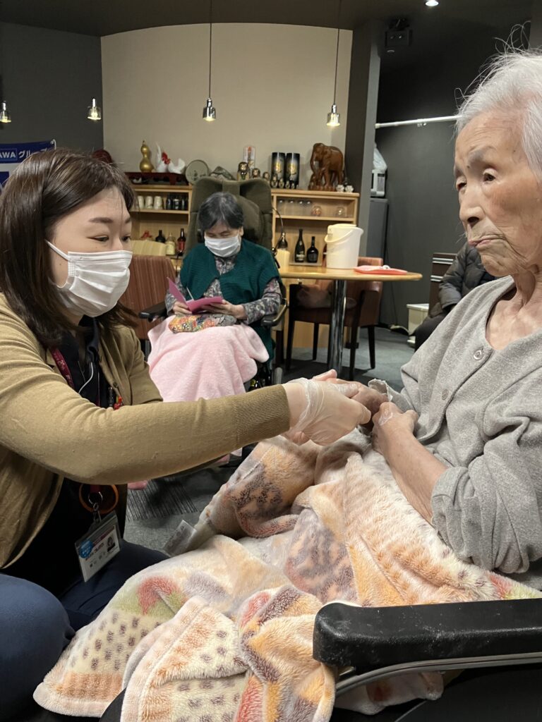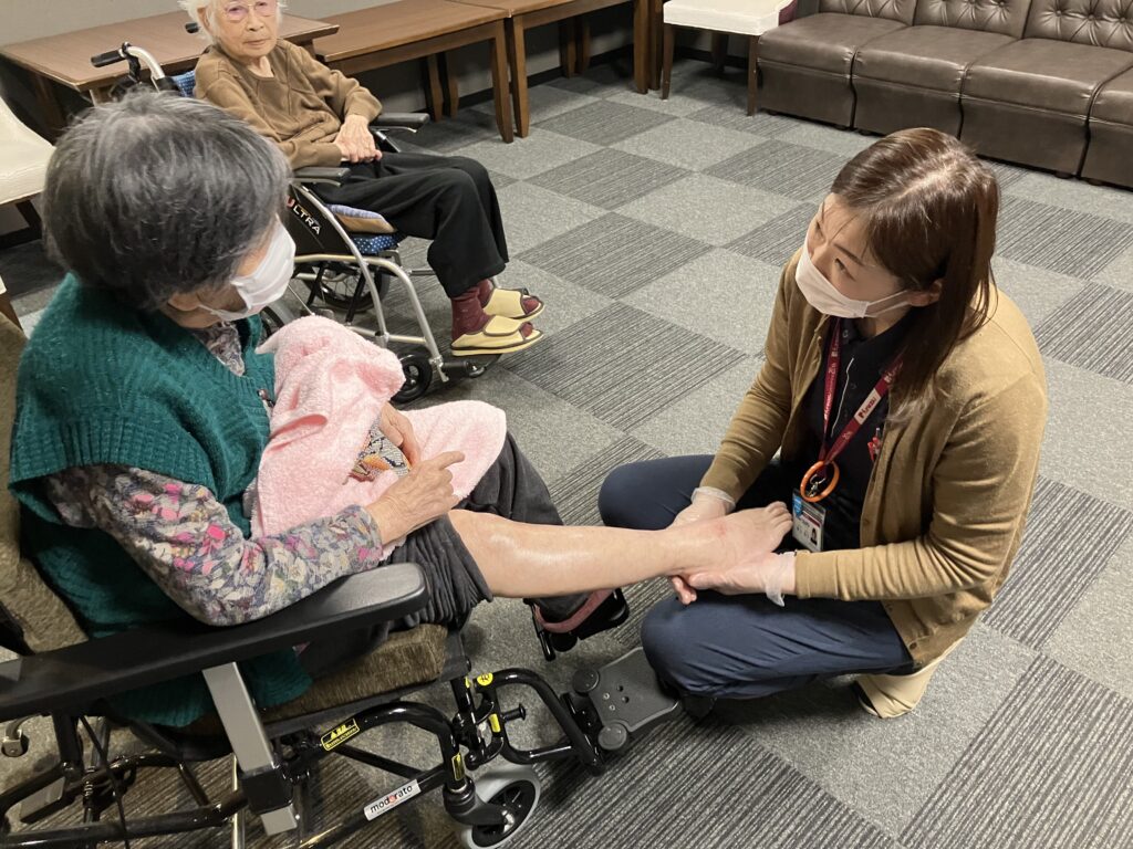18日午後フレアスさんがこられ「保湿クリーム・機能訓練体験会」が行われました(*^^*)