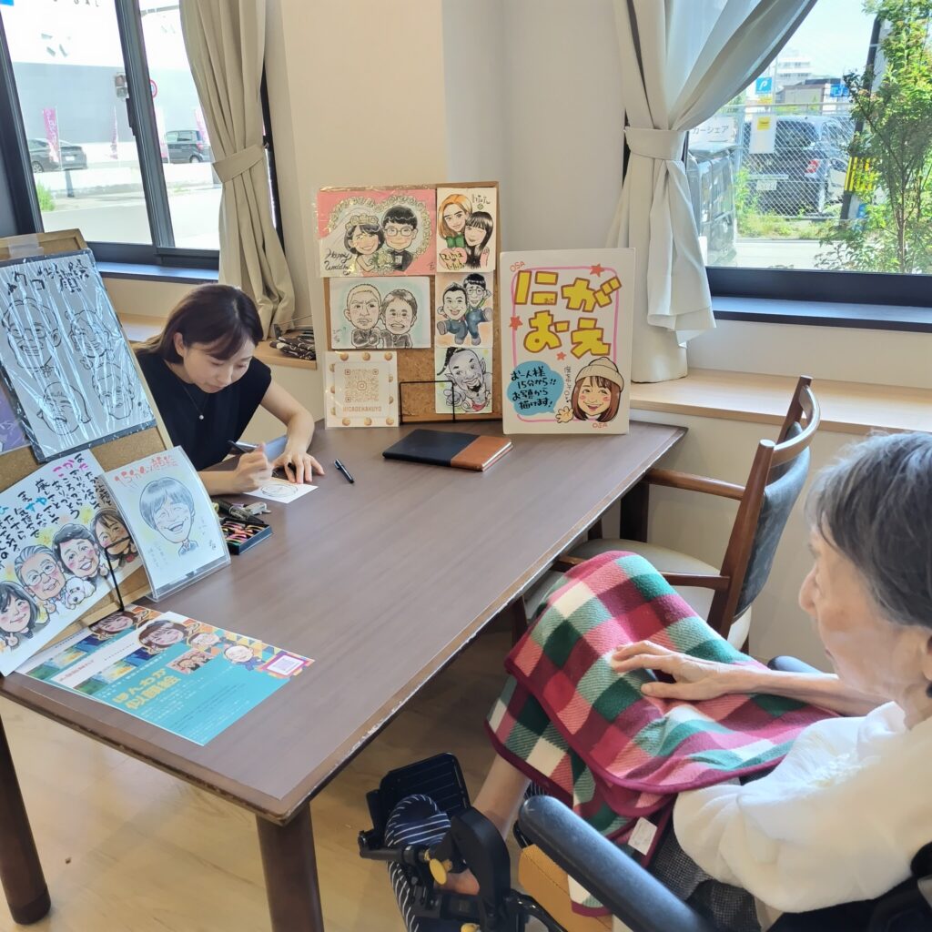 前回好評だった似顔絵師「おさ」さんをお招きし似顔絵体験会をおこないました(*^-^*)