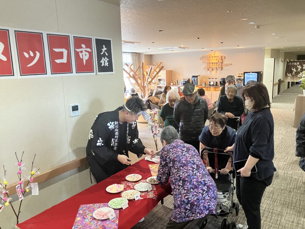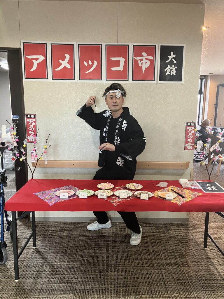 お祭りの雰囲気をぜひ利用者さんに味わって頂きたくて、ここ、さらさ秋田土崎で ”アメッコ市” を開催しました。