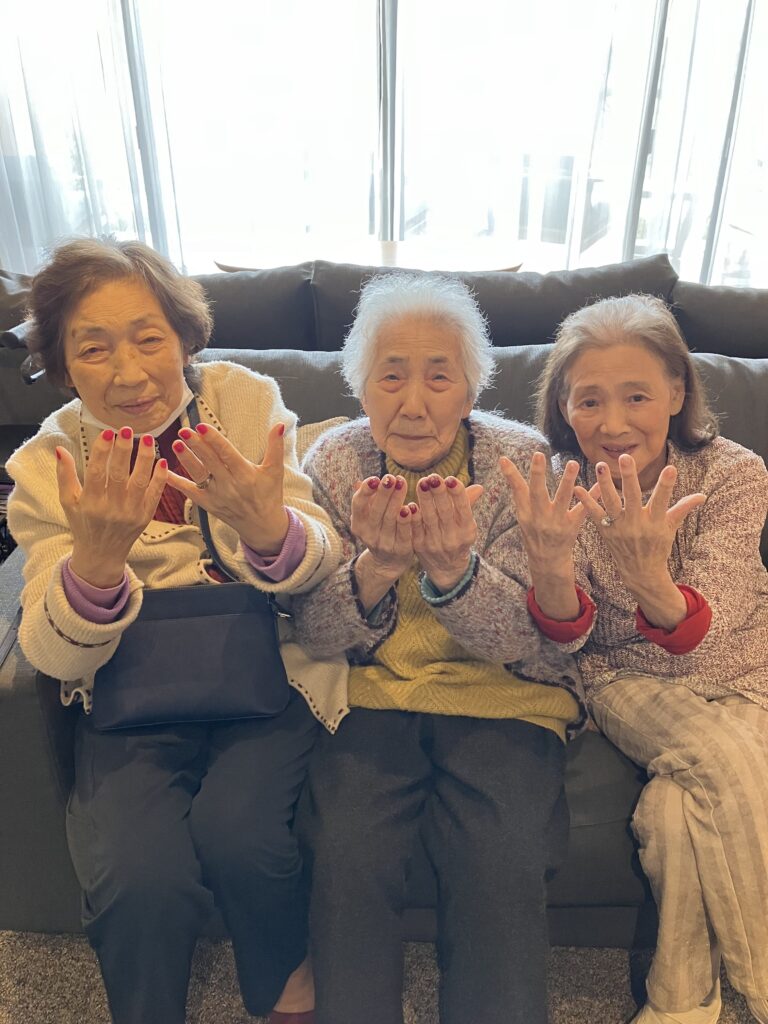 綺麗なネイルに仕上げて頂いたあとは、ロビーでそれぞれの爪を見せ合いをされてニコニコとお話を楽しまれていたり、