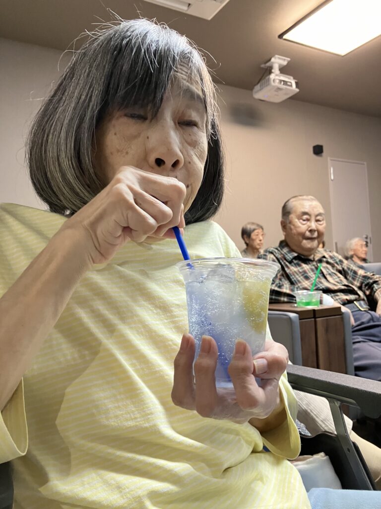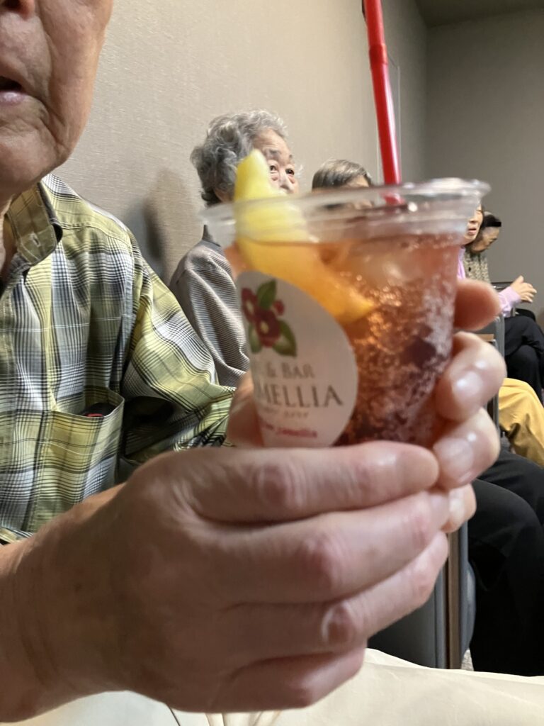 「あなたものむ?」と差し出してくれたFさん。後で頂きます…!🍹
