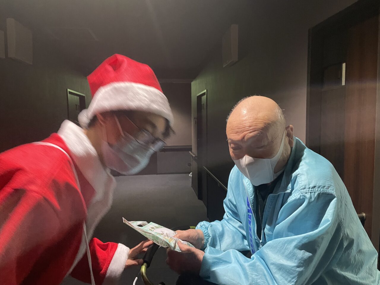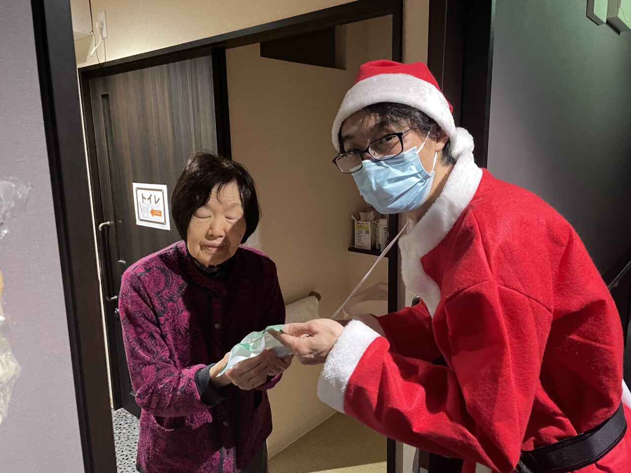 昨夜配られたプレゼント?をもう一人のサンタ?が登場?し今度は皆さんに直接手渡しして下さいました?