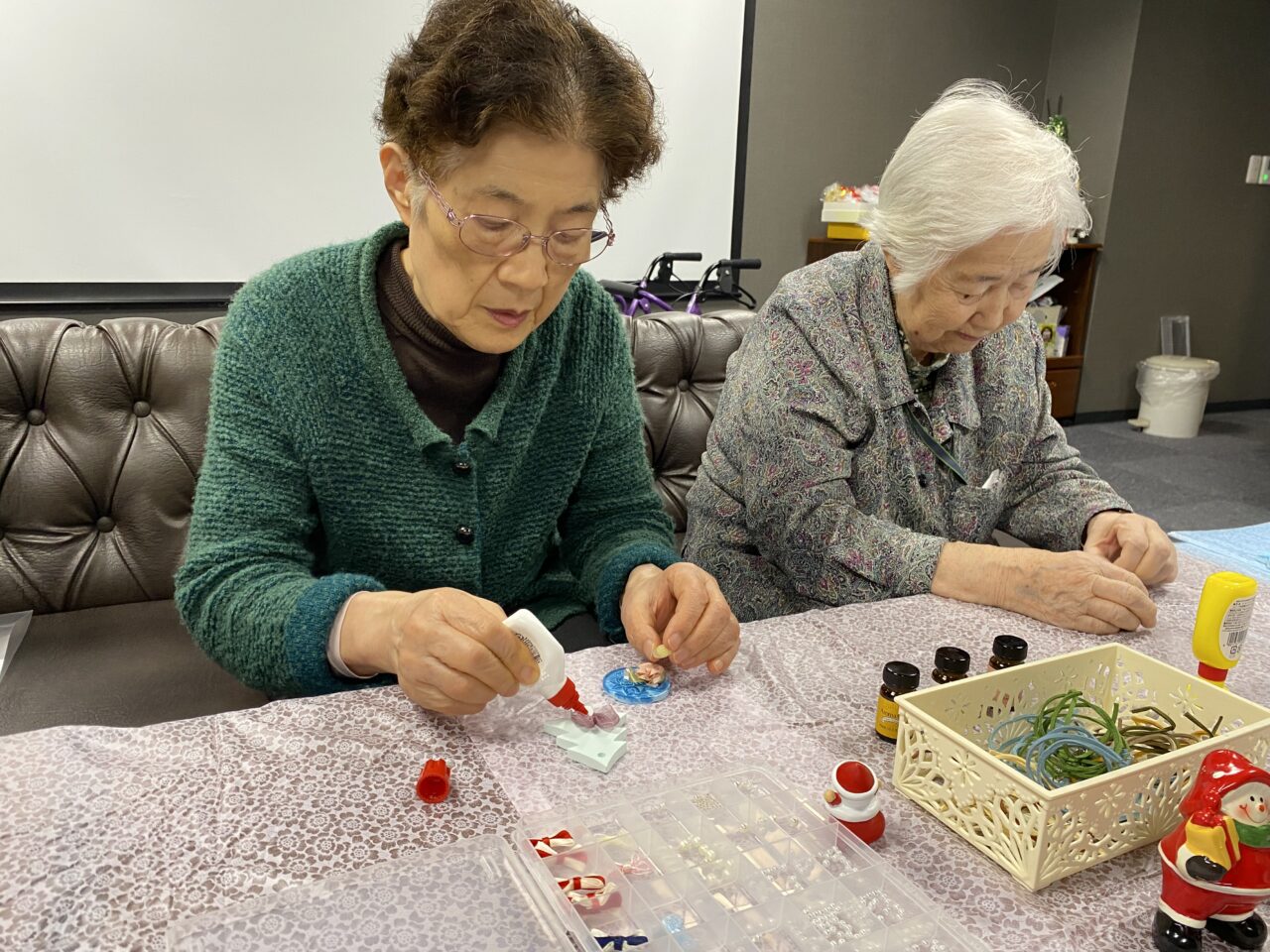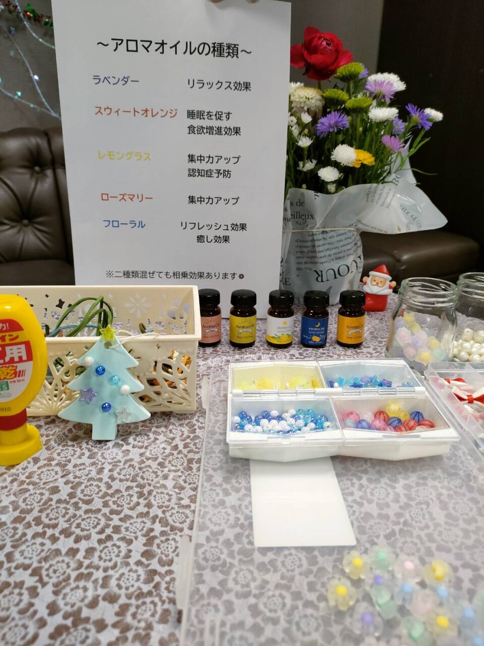 飾りを付け終わったらお好きなアロマの匂いを選んでいただきました(๑>◡<๑)アロマオイルを使用する頃は、ラウンジ全体がとってもいい匂いでした♪♪?