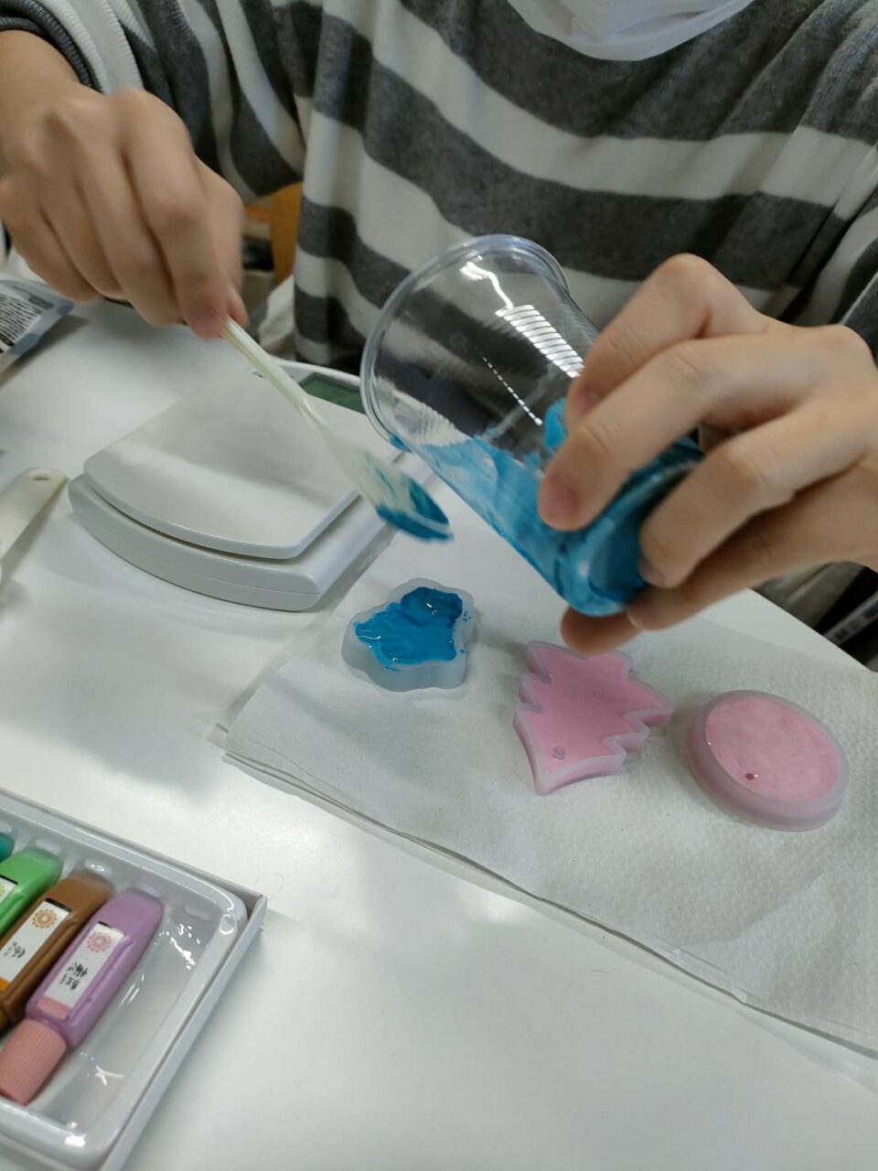 しっかり手洗いも済んだ所で、1人1人好きな石膏の型を選んで頂き、アロマストーン作りスタートです?♀️