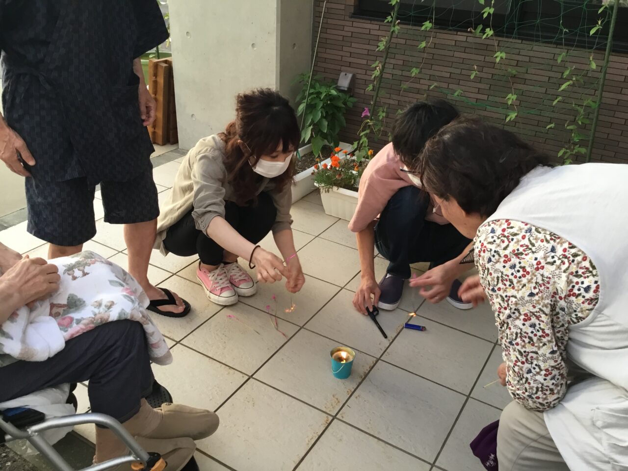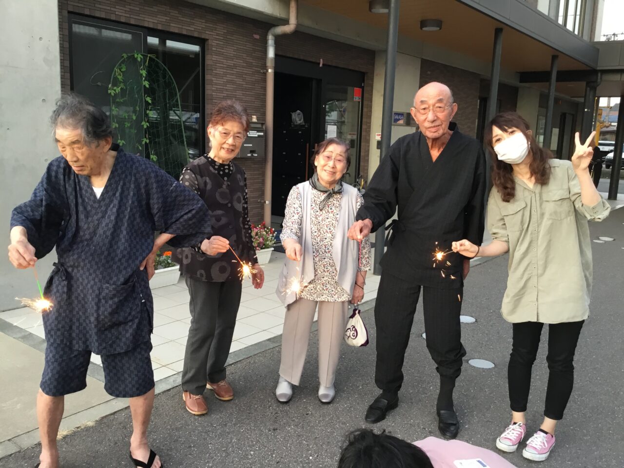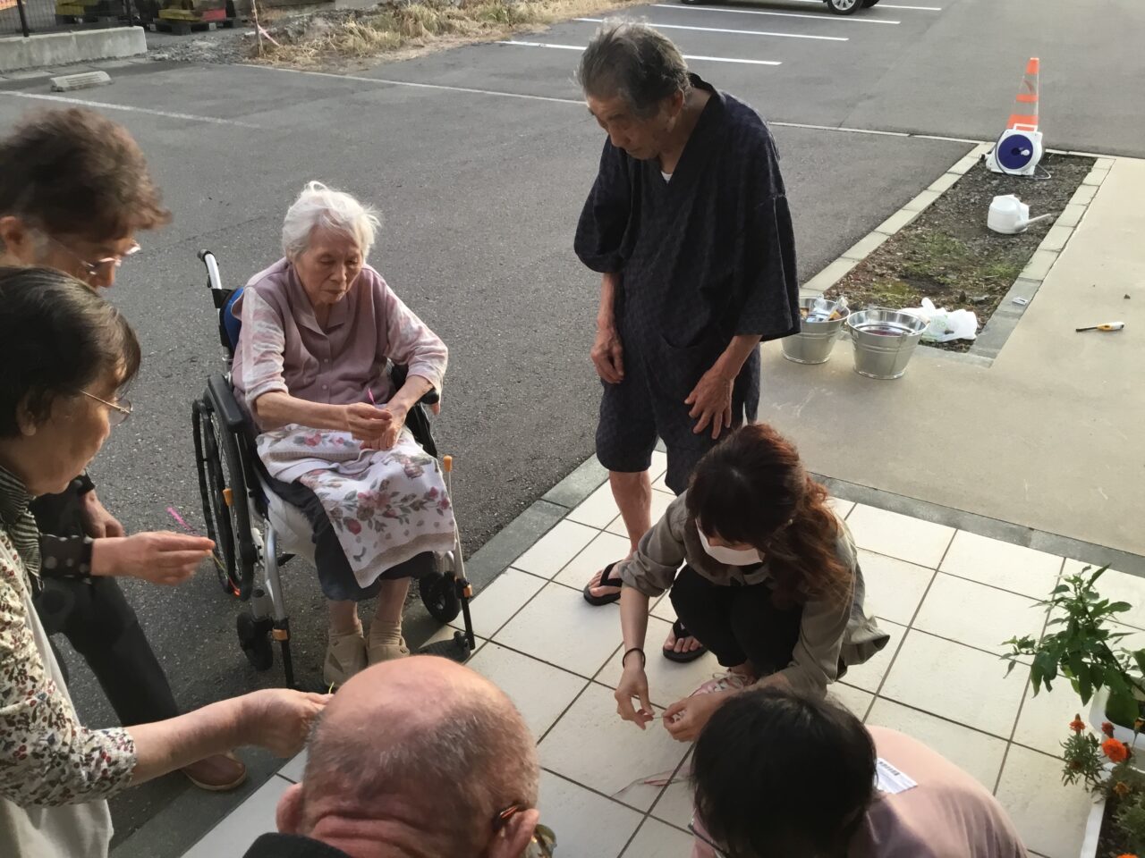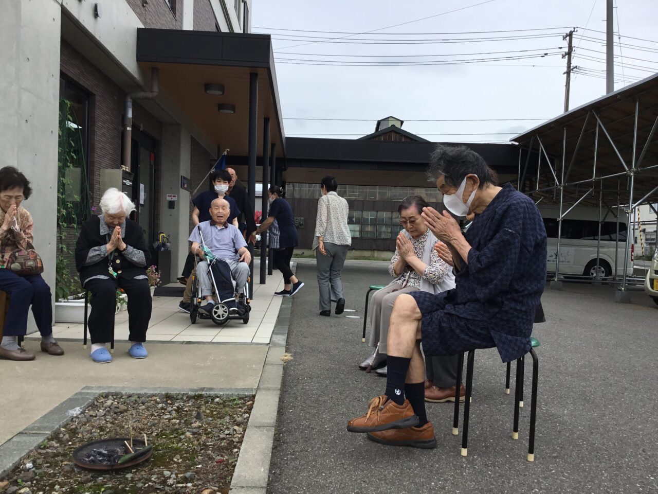 迎え火同様玄関前には沢山のご利用者の皆さんにお集まり頂きました‼️