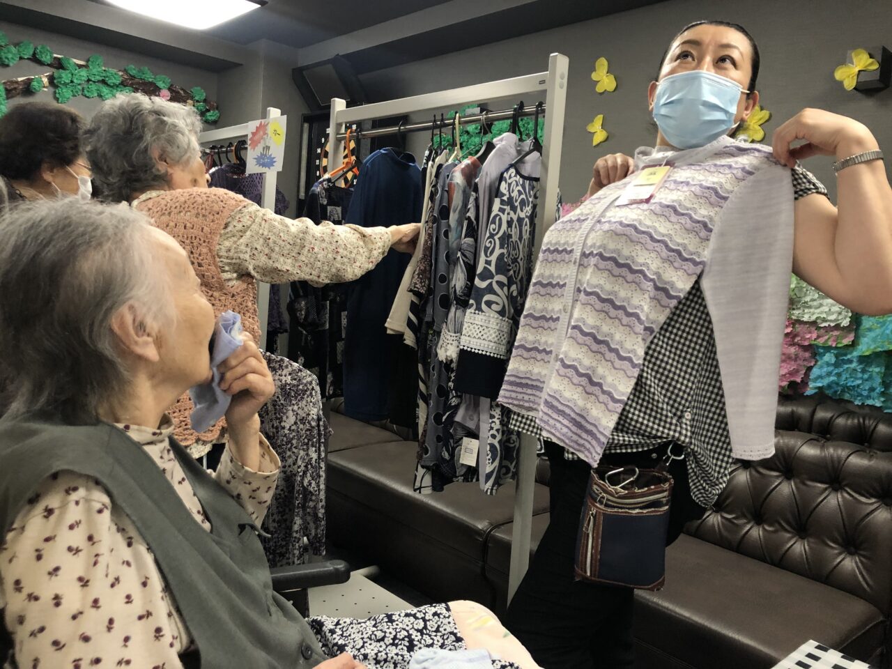 早速夕食時に着て来られる利用者さんもおり、「どう?似合うかしら?」とお話されておりました♪