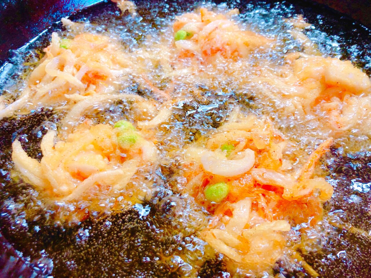 揚げたてのかき揚げが食欲をより一層そそります?