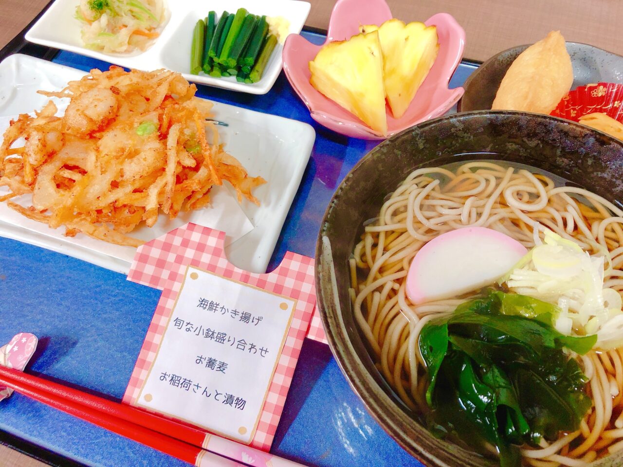 さて、衣替えの日。お昼は衣にかけまして『海鮮かき揚げ蕎麦定食』をご用意??