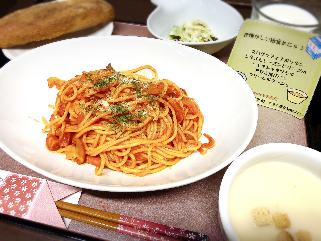 お昼のレストランでは、テレビをお休みし、少しでも気分が上がる様に歌謡曲を流しながら、給食メニューを提供致しました??