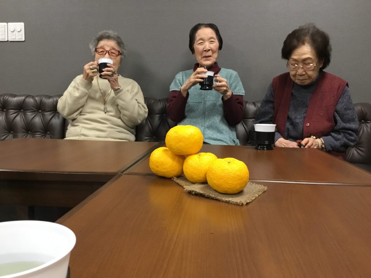 午後のお茶会はラウンジで柚子茶を召し上がっていただきました。