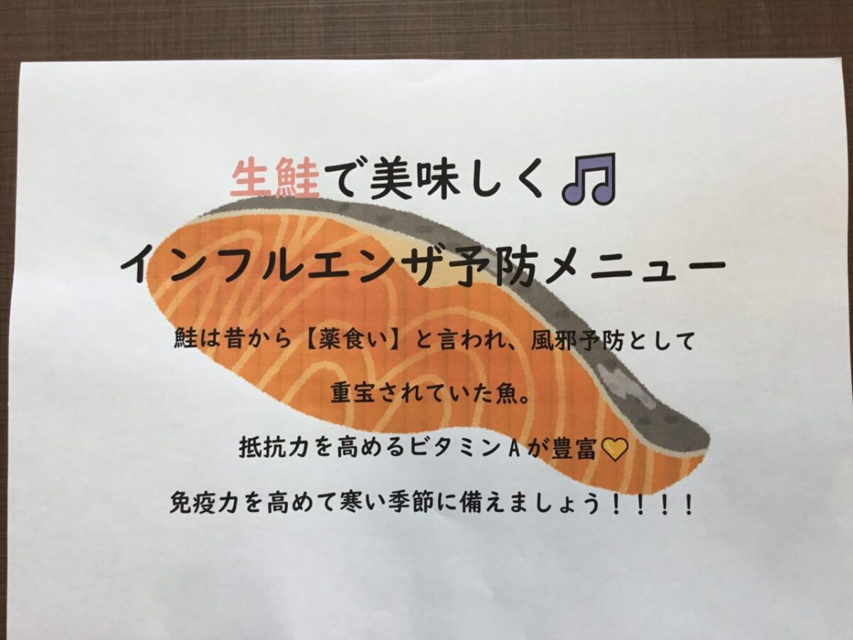 どんどん寒くなって来ましたが‥さらさ横手別館スパでは、免疫力アップ効果のある『生鮭』で「美味しくインフルエンザ予防メニュー」を提供させて頂きました?