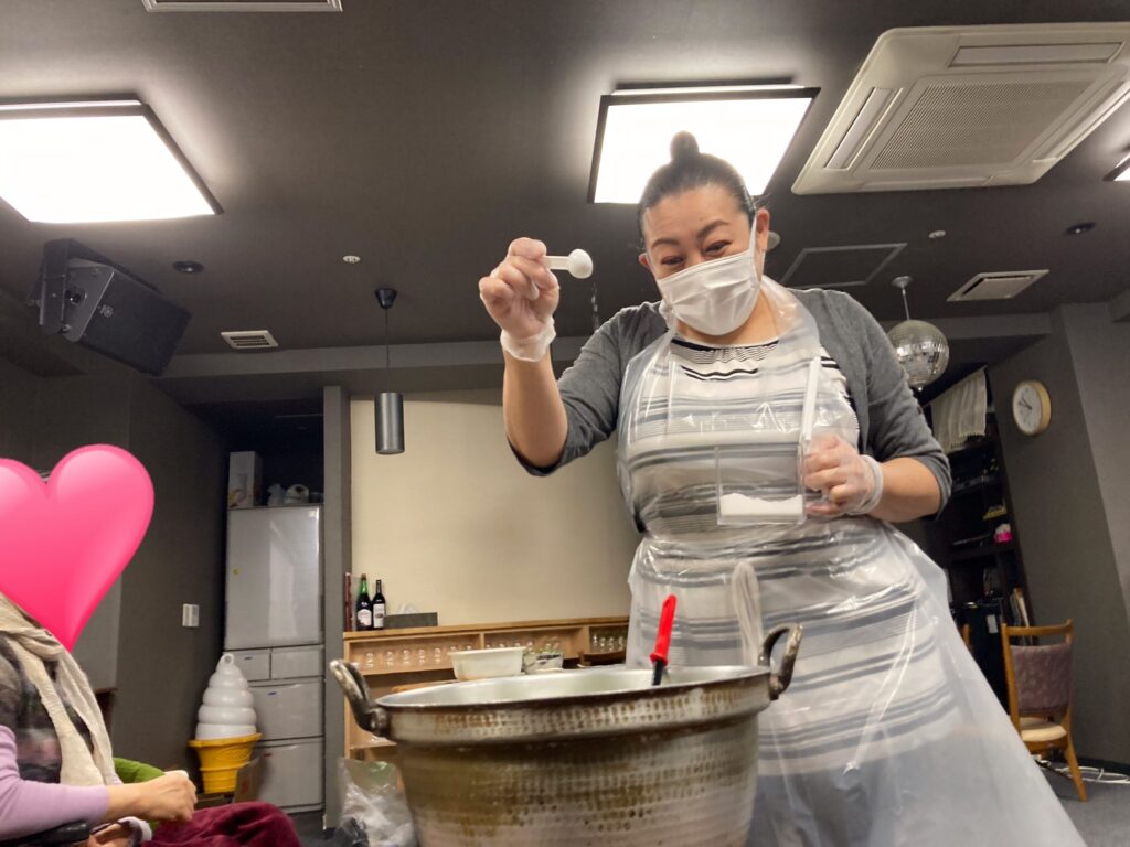 途中、幾度となく味見を繰り返し塩梅の良い芋の子汁の完成となりました〜?