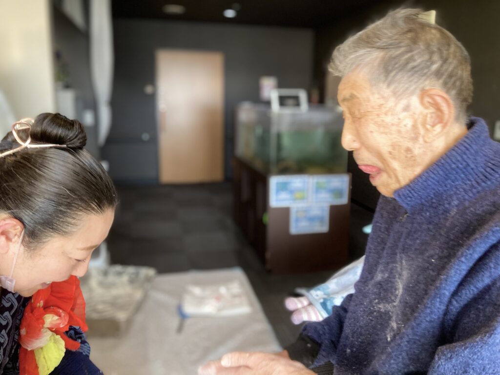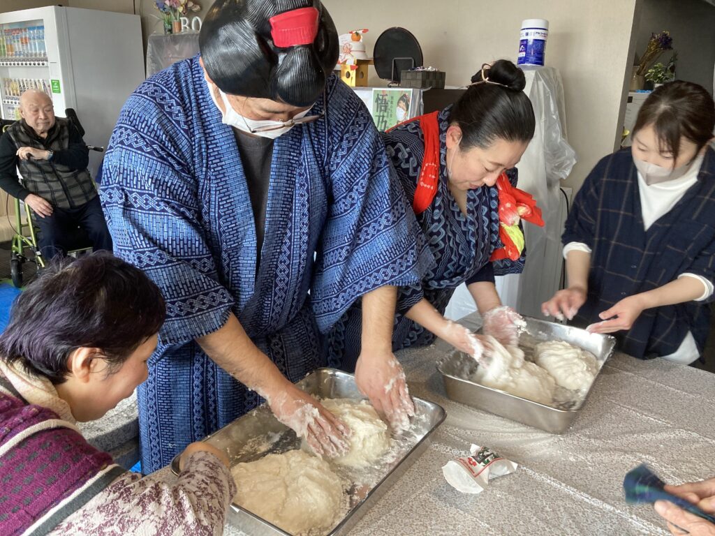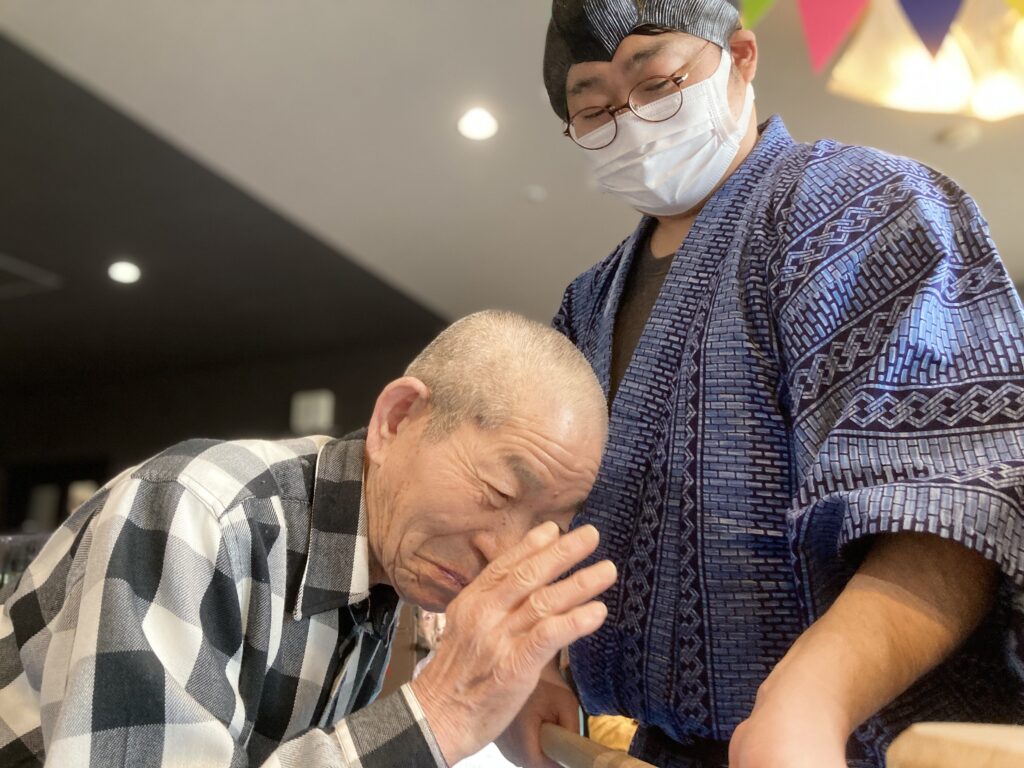 「あや〜こんな見れていがったなや!凄いなや〜!」とおっしゃれておりました☺️パートナーと一緒にお餅をつきましょう♪