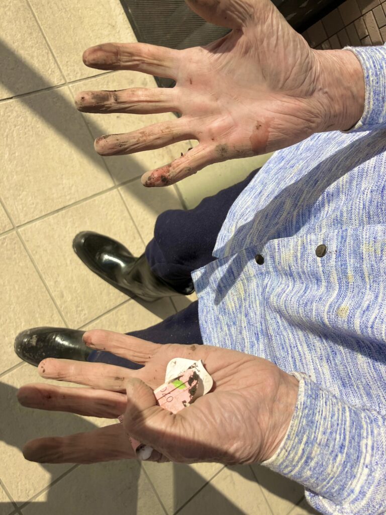 「ほれ!見れ!頑張った証👐」と土まみれになった手を見せて下さいました👀