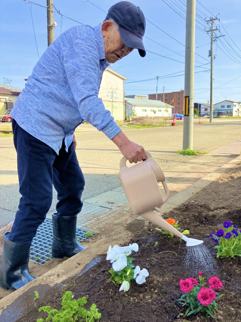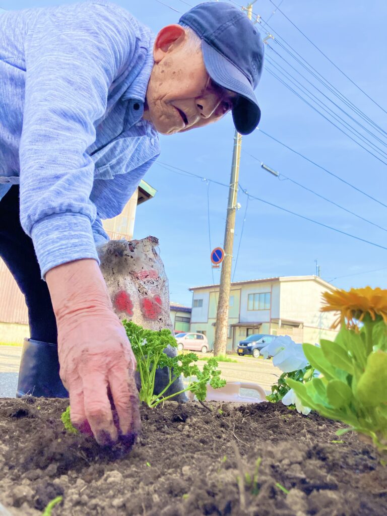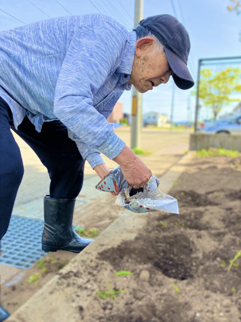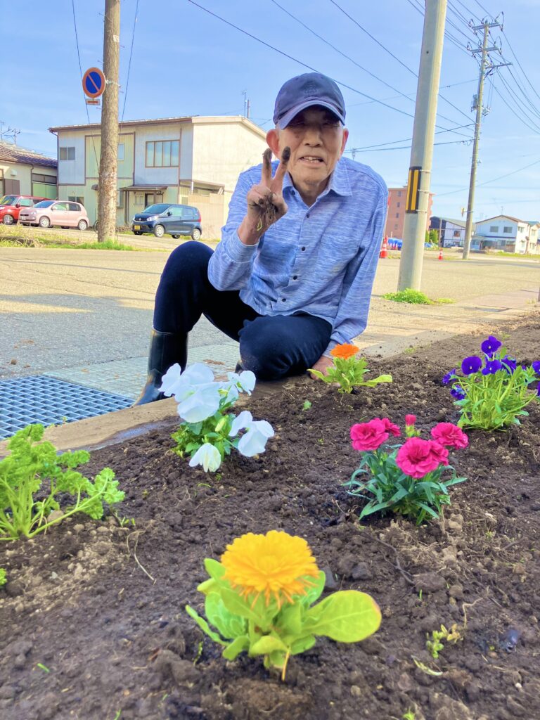 そんな本日も「散歩に行ってくるな!」と声を掛けて下さり、「ここの建物の入り口の所、数日前から草むしりしててよ、今日やっと土っこ出来たがら花っこ買ってくるがら、午後から植えましょう!」とのお誘い☺️🌷