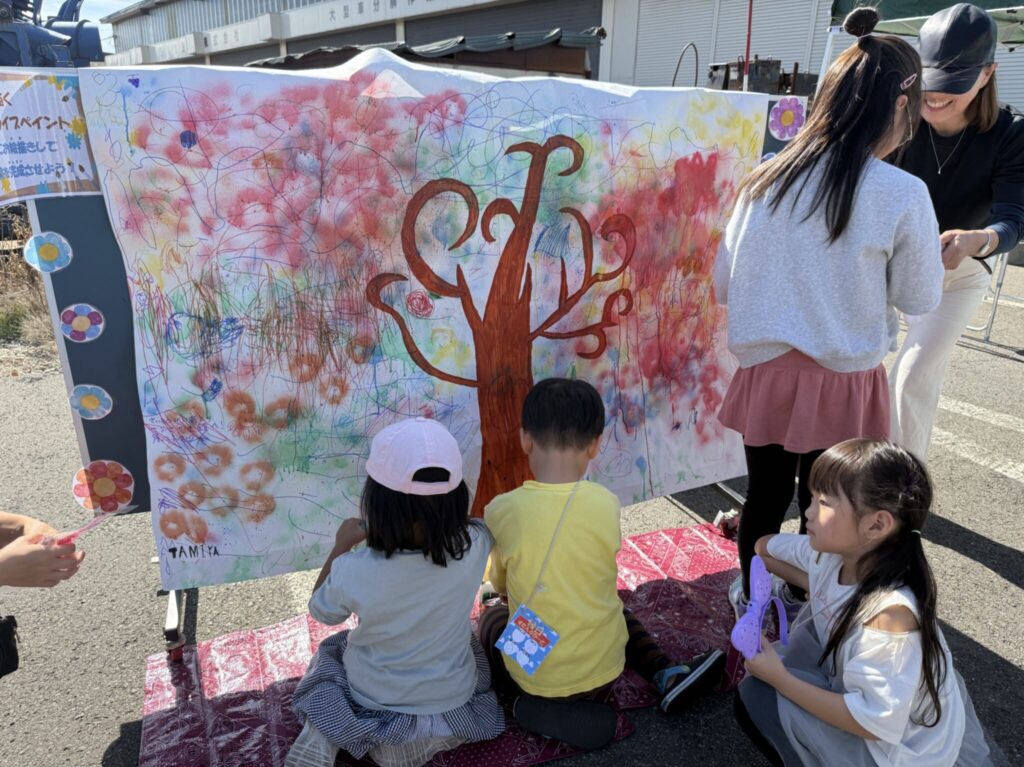 ☝️このライブペイントは1本の木を描いた大きい模造紙に、子供達に自由にペイントしてもらい1枚の絵を完成させよう🖼というコーナー👏