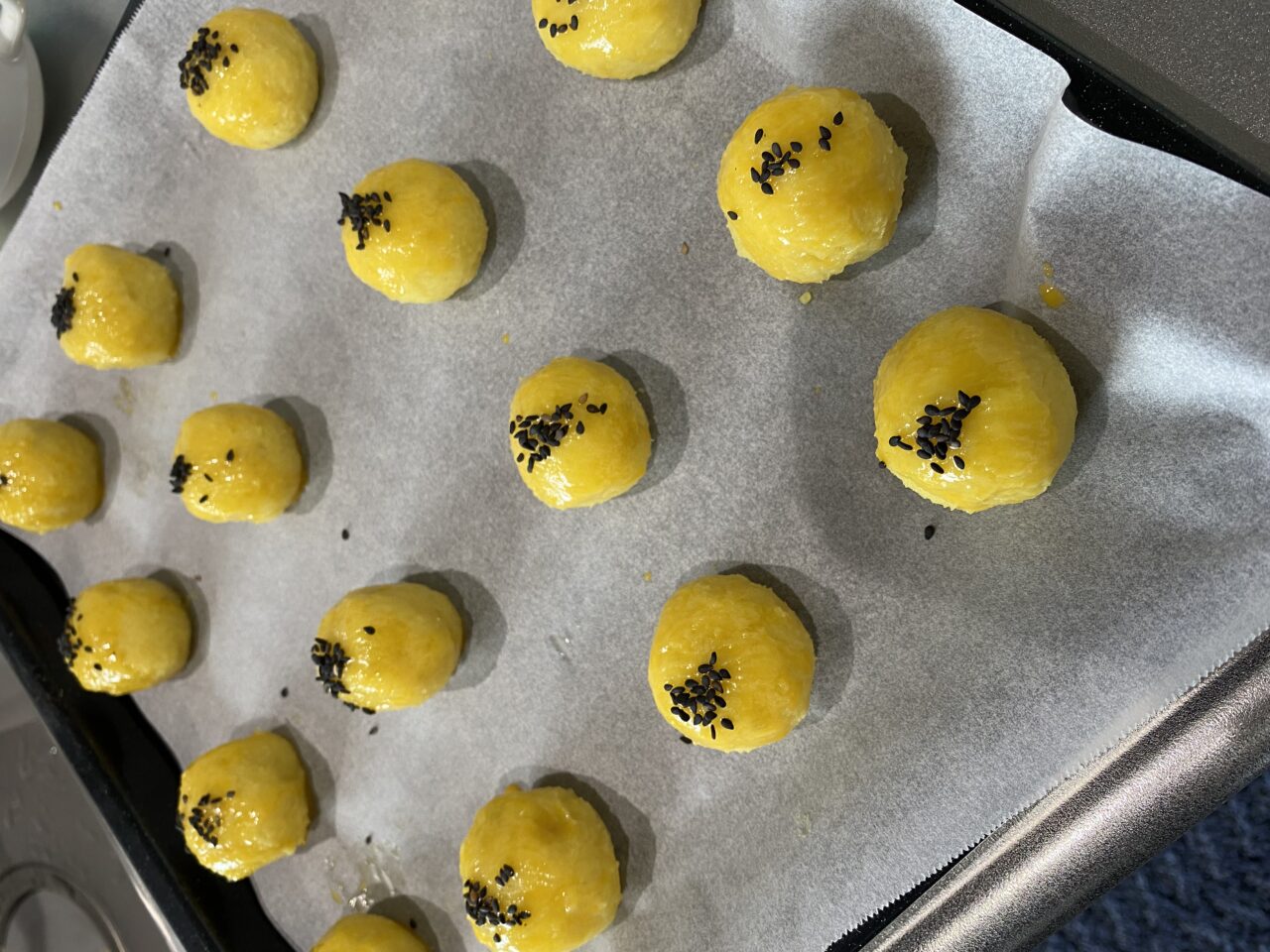 オーブンでじっくり焼いていると、フロア中甘い香りが広がります…?