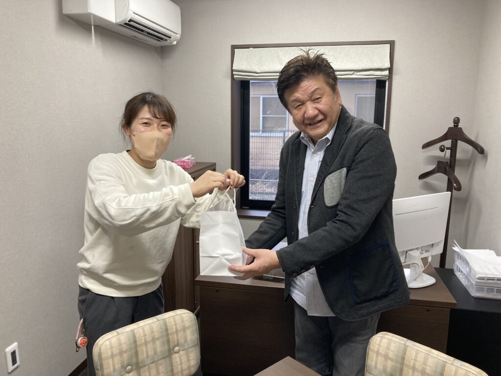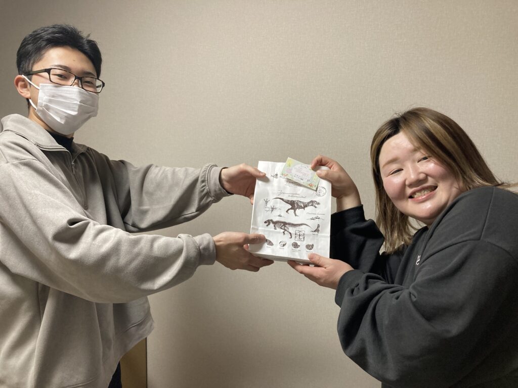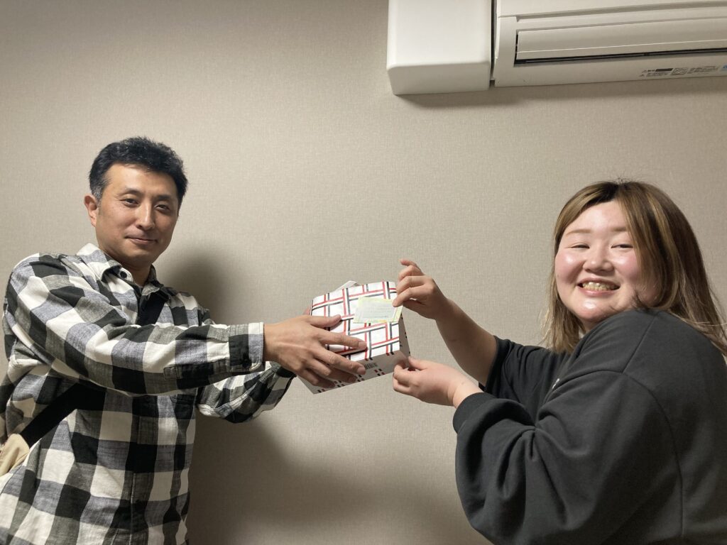続いて、さらさ能代の男性パートナーへ、こちらも手渡しでプレゼント?