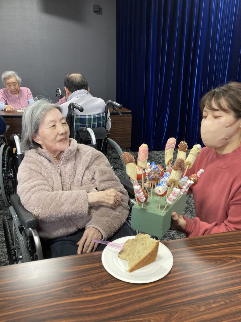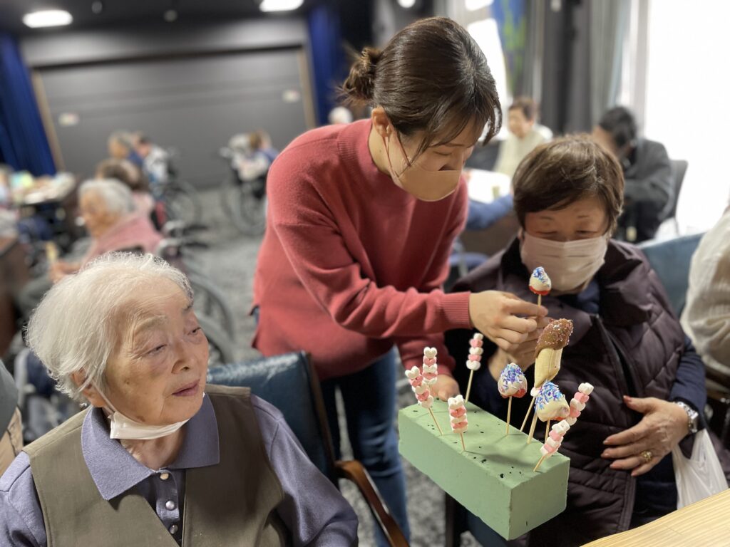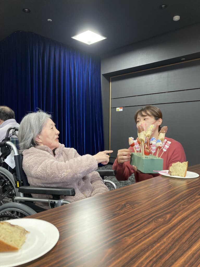 一方で、恵&広華&大山パートナーが利用者さんに向けて何やらスイーツ作りに精を出しているとのこと。様子を伺うと、