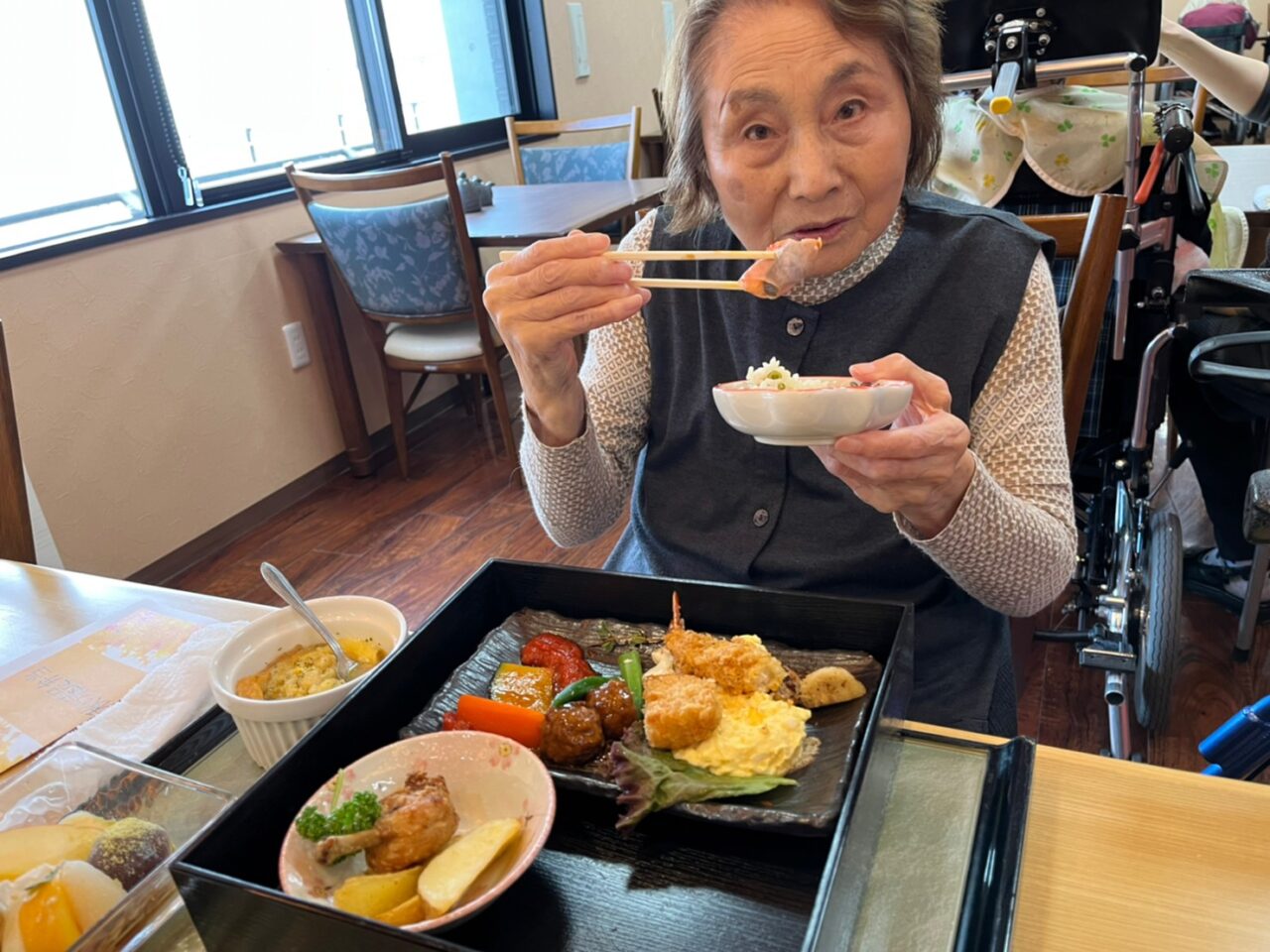 久々の遠出🚌皆さん満喫なさったようですね😊参加なさらなかったご利用者さんにも、気分が味わえるようにとのお弁当風のお食事も🍱パートナーの心遣いが伝わってきますね😌🍀