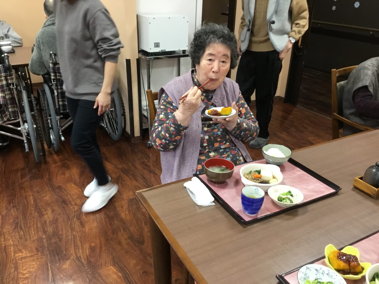 冬至と気付いていないご利用者さんもかぼちゃを食べて、ゆず湯に入ると、今日が冬至だと気付かれていました。これから、ますます寒くなると思います。体調に気を付けて過ごして頂きたいと思います。