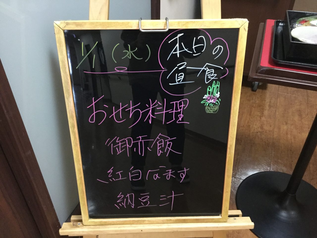 昼食はおせち料理。元旦の納豆汁は秋田県民熱愛のソウルフードです。ハタハタ寿司に立派な数の子、もちもちなお赤飯にみなさん喜ばれていました。「ここのご飯は何食べても美味しいけど今日は一段とおいしいな!」とおっしゃってくださる方がたくさんいらっしゃいました。