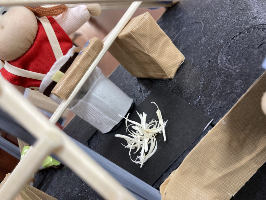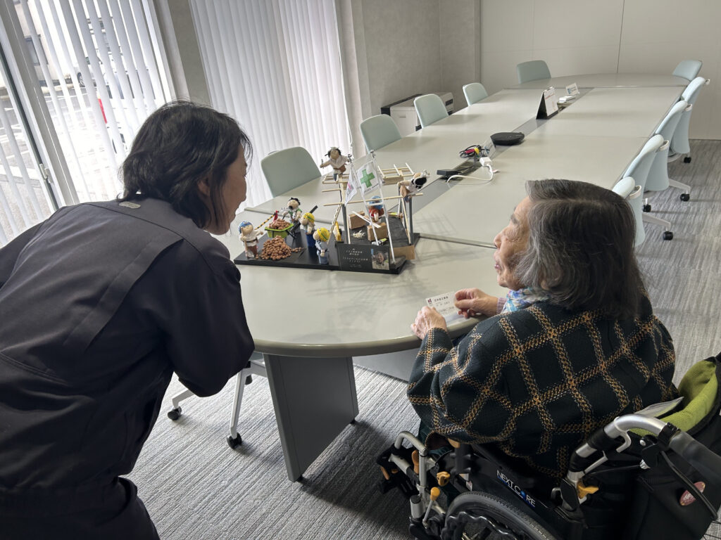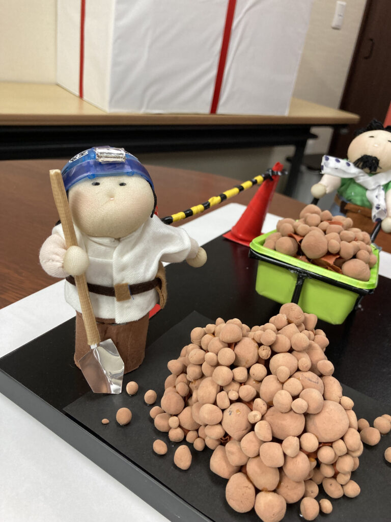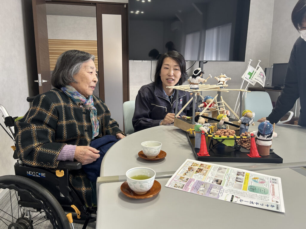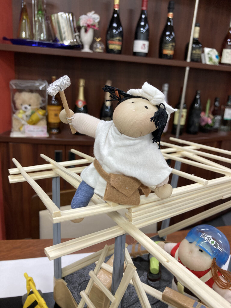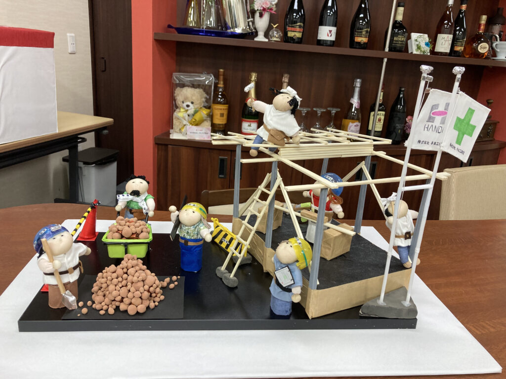 Iさんは今回の作品だけでなく、さらさ横手館内へも季節に合わせ、横手の盆踊りの様子やひな祭りのお人形さんなどたくさん作って飾ってくれています?施設に来てくれる利用者さんのご家族や、業者の方も「これみるの楽しみなの」と声をかけてくれて下さいます。キラキラ保育園の園児にもおままごとセットなどを作成してくださり、本当にみんなが喜んでくれています!