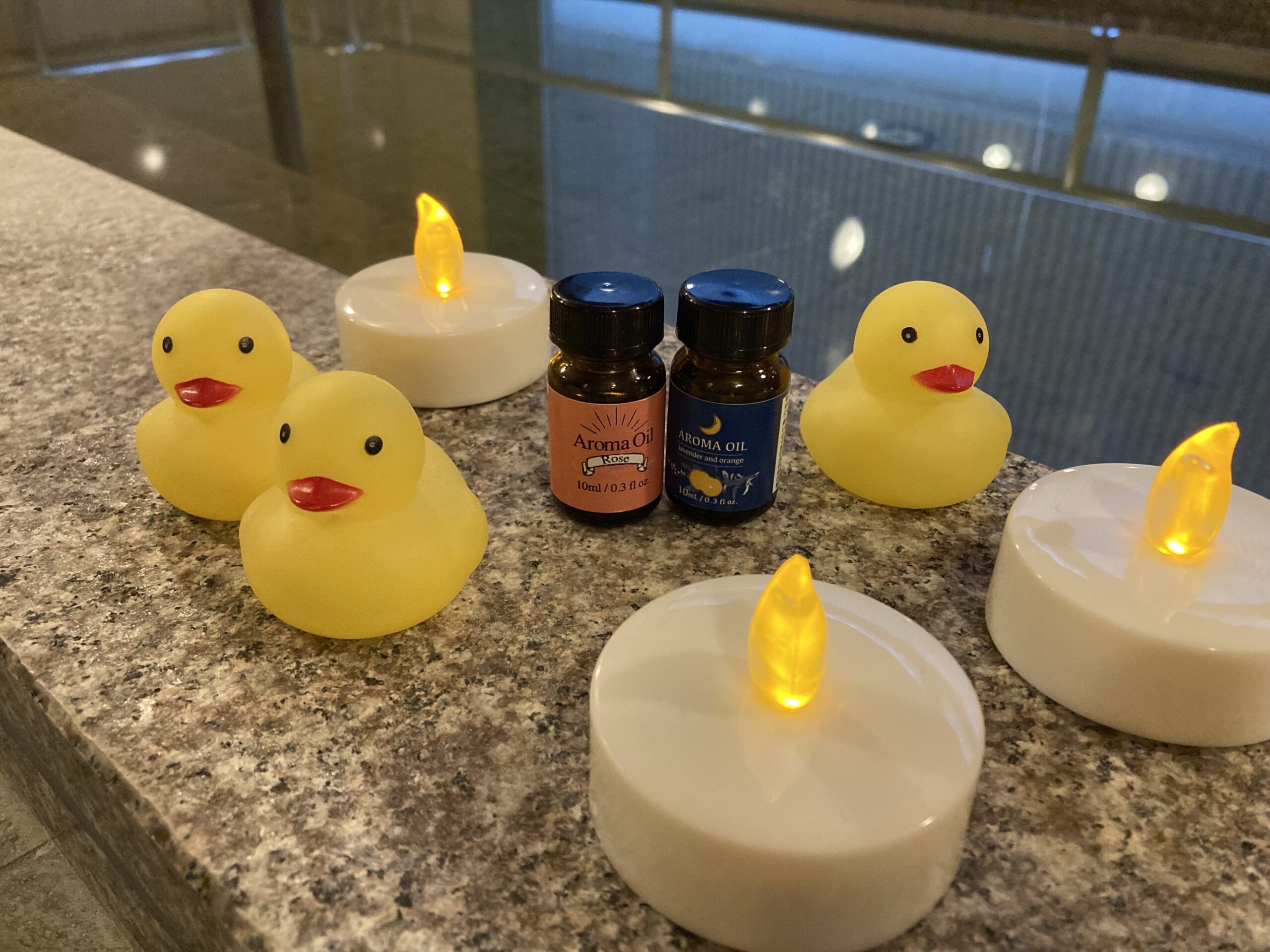 佐賀パートナー手作りのアロマキャンドルも大活躍‼️いつもとは違うムーディーな大浴場に変身です✨