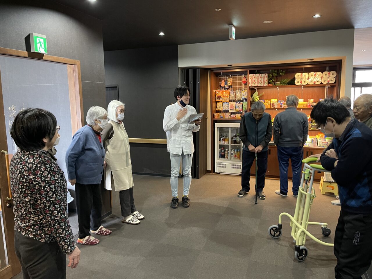 颯爽とエレベーターで登場の利用者さん。