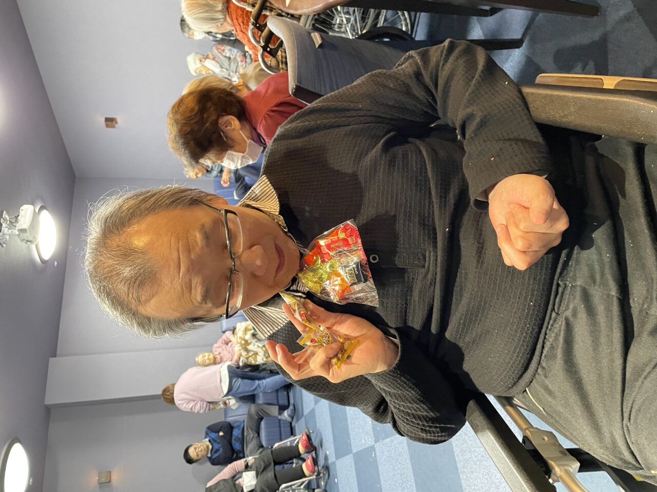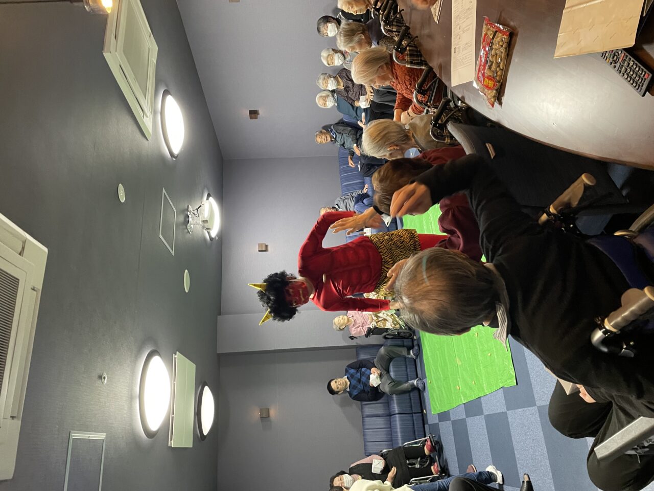 ラウンジでの豆まきでは、利用者さんが容赦なくパートナー扮する鬼の退治に参加されているご様子にクスッと笑えてきました😊